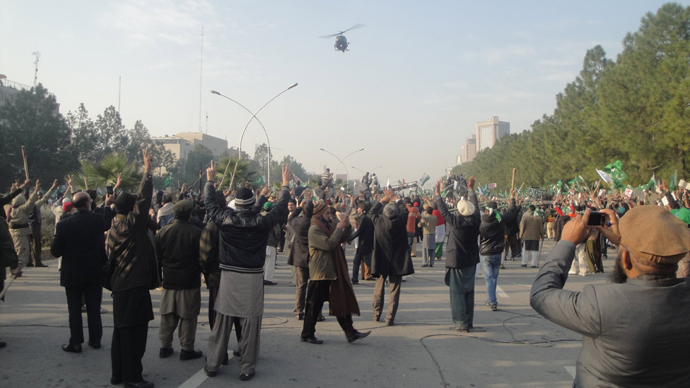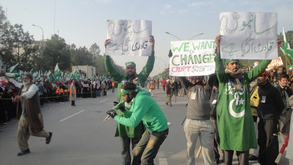 • سوموار کی رات ڈاکٹر طاہر القادری نے سٹیج پر آتے ہی کہا کہ وہ ابھی خطاب نہیں کر رہے بلکہ انتظامیہ کو پانچ منٹ کی مہلت دے رہے ہیں کہ ان کا سٹیج پارلیمان کے سامنے ڈی چوک میں منتقل کیا جائے اور وہ وہیں خطاب کریں گے۔