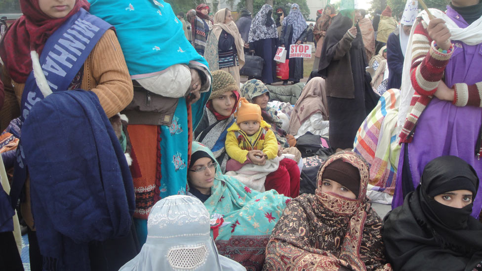 • مارچ کے شرکاء میں خواتین اور بچوں کی ایک بڑی شامل ہے جن میں کئی شیر خوار بچے شامل ہیں۔