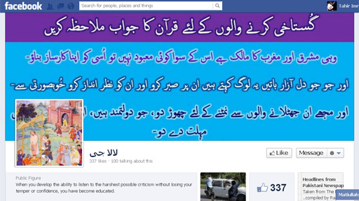 ایک اور قاری نے شعر کے ذریعے اپنی رائے کا اظہار کیا جو کہ اپنی رائے کو سماجی رابطوں کی ویب سائٹ پر پہنچانے کا ایک بہت مقبول طریقہ ہے۔
