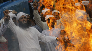 اطلاعات کے مطابق بنگلہ دیش کے دارالحکومت ڈھاکہ میں مظاہرین امریکہ میں بننے والے اسلام مخالف فلم کے خلاف مظاہرہ کر رہے ہیں۔ مظاہرین نے امریکی پرچم اور صدر براک اوباما کے کفن کو نذر آتش کیا ہے۔
