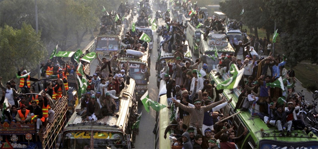 خبر رساں ایجنسی اے ایف پی کے مطابق لاہور میں سینکڑوں گاڑیوں، بسوں اور ٹرکوں پر سوار سات ہزار کے قریب افراد لاہور سے اسلام آباد کی جانب روانہ ہوئے ہیں۔