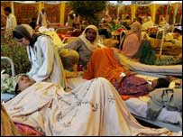 حکومت پاکستان اور دیگر امدادی اداروں نے شدید زلزلے سے متاثرہ افراد کو امداد دینے اور پھنسے ہوئے لوگوں کو نکالنے کے لیے بڑے پیمانے پر امدادی کام شروع کیا گیا ہے۔ پاکستان کے فوجی ترجمان میجر جنرل شوکت سلطان نے بی بی سی کو بتایا ہے کہ پچیس ہیلی کاپٹر اس آپریشن میں حصہ لے رہے ہیں۔ جس میں ان کے مطابق بیس بڑے ٹرانسپورٹ اور پانچ چھوٹے ہیلی کاپٹر شامل ہیں۔ حکام کا کہنا ہے کہ تودے گرنے کی وجہ سے ا بھی کئی سڑکیں بند ہیں اور متاثرہ علاقوں کا رابطہ منقطع ہے اور امدادی کارکن زمینی رستے سے ان علاقوں میں نہیں پہنچ پائے۔ حکام کے مطابق مختلف سڑکیں صاف کرنے اور راستے بحال کرنے کے لیے بلڈوزر اور متعلقہ عملہ کام کر رہا ہے اور امید ہے کہ جلد رابطہ بحال ہوجائے گا۔ ادھر اتوار کو برطانوی ماہرین کی ایک ٹیم جدید آلات سمیت اسلام آباد پہنچی ہے اور اس نے زمین بوس ہونے والی دس منزلہ عمارت کے ملبے تلے دبے زندہ افراد کی آواز اور میٹل یعنی دھات کی بنا پر نشاندہی کا کام شروع کردیا ہے۔ ٹیم نے اب تک دو زندہ بچوں کی نشاندہی کی ہے۔ اس برطانوی ٹیم کے ایک ماہر جان ہالینڈ نے بی بی سی کو بتایا کہ جہاں بچے موجود ہیں وہاں سے ملبہ ہٹایا جارہا ہے اور امید ہے کہ انہیں زندہ بچالیا جائے گا۔ اب تک اس عمارت کے ملبے تلے چھبیس افراد کی لاشیں اور نوے سے زیادہ زخمیوں کو نکالا جاچکا ہے۔ گزشتہ رات اسلام آباد، مظفرآباد اور صوبہ سرحد کے بالائی علاقوں میں جہاں سب سے زیادہ زلزلے کے متاثرین ہیں وہاں بارشوں کی وجہ سے امدادی کام متاثر ہوا تھا۔ لیکن اتوار کے روز موسم بہتر ہونے کی وجہ سے امدادی کام تیزی سے جاری ہیں۔ |