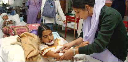 ڈاکٹروں کا کہنا ہے کہ پاکستان میں آنیوالے زلزلے میں زخمی ہزاروں لوگوں کو اگر بروقت طبی امداد نہیں فراہم کی گئی تو انہیں موت کا خطرہ ہوسکتا ہے یا ان کے اعضاء کاٹنے کی ضرورت پڑسکتی ہے۔ طبی ٹیمیں اب بھی ان دور دراز دیہاتوں میں زخمیوں تک پہنچنے کی کوشش کررہی ہیں جنہیں لگ بھگ دو ہفتے قبل آنیوالے زلزلے کے بعد سے کوئی امداد نہیں ملی ہے۔ اگرچہ ڈاکٹروں نے اونچے پہاڑوں پر سے زخمیوں کو ہسپتالوں تک پہنچایا ہے تاہم جن کی مدد نہیں کی جاسکی انہیں انفیکشن کا خطرہ لاحق ہے۔ ہمارے نامہ نگار کے مطابق سیری نامی گاؤں پہنچنے پر ڈاکٹروں کو انفیکشن کے سنگین واقعات دیکھنے کو ملے۔ ایک خاتون انفیکشن کی وجہ سے اپنی انگلی کھو بیٹھی تھی۔ اس کے ہاتھ اور پیر سوج گئے تھے اور وہ اتنی کمزور ہوگئی تھی کہ اسے سڑک پار کرانے کے لئے مدد کرنی پڑی۔ عالمی طبی امدادی ادارے میڈیسنس سانس فرنٹیئر کے لئے کام کرنے والے وِنس ہوئیٹ کہتے ہیں: ’یہ اچھی بات ہے کہ حکام، بالخصوص فوجی اہلکار، سنگین مریضوں کو کئی مقامات سے ہسپتالوں تک پہنچانے میں کامیاب رہے ہیں لیکن جو پیچھے رہ گئے تھے، جو ابتدا میں کم زخمی تھے، اب انہیں ترجیح دینی پڑرہی ہے کیوں کہ وقت گزرنے کے ساتھ ساتھ ان کے فریکچر اور زخم زیادہ سنگین ہوگئے ہیں۔‘ میڈیسینس سانس فرنٹیئر کا کہنا ہے کہ آنے والی سردی میں ضرورت مندوں تک امداد پہنچانا مشکل ترین ہوجائے گا۔ مریضوں کے لئے بنائے جانے والے فیلڈ ہسپتالوں میں سردی سے بچاؤ کی اتنی سہولیات نہیں ہیں کہ شدید سردی کا سامنا کیا جاسکے۔ خصوصی طور پر تیار کیے گئے کیروسین تیل سے جلائے جانے والے اسٹوو والے خیموں کو ان علاقوں میں دسمبر میں برفباری شروع ہونے سے پہلے پہنچانا پڑے گا۔