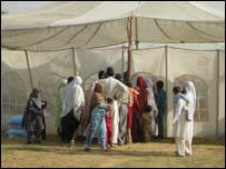 پاکستان اور کشمیر میں زلزلے کے متاثرین کے لیے اسلام آباد میں خیمہ بستی قائم کی گئی ہے جہاں شہر کی مختلف سرکاری عمارتوں میں عارضی طور پر ٹھہرائے جانے والے زلزلہ زدگان کو منتقل کیا جارہا ہے۔ وزارت داخلہ کی جانب سے قائم کردہ اس کیمپ کا انتظام ’کیپیٹل ڈیولپمینٹ اتھارٹی‘ کے پاس ہے اور حکام کے مطابق پیر کی شام تک ایک ہزار کے قریب مرد، خواتین اور بچوں کو اس کیمپ میں منتقل کیا گیا۔ ایچ الیون سیکٹر میں افغان پناہ گزینوں کی کچی بستی کے قریب واقع خیمہ بستی بڑی سڑک کے کنارے ہے جہاں ’پبلک ٹرانسپورٹ‘ کی بھی سہولت موجود ہے۔ تاہم دکانیں اور ہوٹل وغیرہ کچھ دور ہیں۔ خیمہ بستی میں مظفرآباد سے آئی ہوئی ایک خاتون شمیم اختر نے بتایا کہ بجلی، پانی، استنجا خانے، سکول اور طبی کیمپ بھی خیموں میں قائم کیے گئے ہیں۔ لیکن سکول اور طبی کیمپ نے ابھی کام شروع نہیں کیا۔