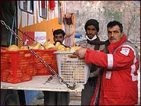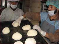 ہلال احمر کے لوگوں نے بتایا کہ وہ بالا کوٹ میں روزانہ دس سے گیارہ ہزار روٹیاں پکاتے ہیں۔ انہوں نے گرد ونواح کے گاؤں کی فہرست بنا رکھی ہے جہاں باقاعدگی سے روٹی پہنچائی جاتی ہے اس کے علاوہ تمام بڑی خیمہ بستیوں کے لیے ان کے منتظیمین تک روٹی کی ٹوکریاں پہنچا دی جاتی ہیں۔ مظفرآباد کے روٹی پلانٹ میں چھ سے آٹھ ہزار روٹیاں پکائی جاتی ہیں۔ اس پلانٹ کے لیے میدہ اور دیگر اجزاء ترکی سے آتے ہیں۔ ہلال احمر کے ڈائریکٹر سیزکی چک مک ایک ترجمان کی مدد سے بی بی سی سے گفتگو کر رہے تھے۔ انہوں نے کہا کہ انہوں نے مقامی لوگوں کو پلانٹ چلانے کی تربیت دیدی ہے اور ایک فیصلے کے تحت وہ پاکستان سے واپس جانے سے پہلے یہ پلانٹ پاکستانی ہلال احمر کے حوالے کردیں گے لیکن انہوں نے کہا کہ وہ اس بات کی ضمانت نہیں دے پائیں گے کہ ان کے جانے کےبعد بھی یہ پلانٹ چلتے رہیں اور عیک مک جن لوگوں کی زندگی کا حصہ بن چکی ہے ان تک پہنچتی رہے گی۔ | اسی بارے میں | ||||||||||||||||||||||||||||||||||||||||