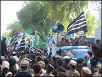 پاکستانی حکام نے ڈمہ ڈولہ کے متاثرہ علاقے کا جائزہ لینے کے لیے جانے والے اپوزیشن رہنماؤں اور صحافیوں کے وفد کو باجوڑ ایجنسی میں داخل ہونے کی اجازت نہیں دی ہے۔ اطلاعات کے مطابق ستّر گاڑیوں پر مشتمل اس قافلے کو پشاور سے چالیس کلومیٹر شمال میں یکہ گنڈ چیک پوسٹ پر روک لیا گیا۔ ایک مقامی افسر محمد جمیل کا کہنا ہے کہ ’ ہمیں وفاقی حکومت کی جانب سے حکم ہے کہ اپوزیشن رہنماؤں کو آگے نہ جانے دیا جائے‘۔ قبائلی علاقے میں داخلے کی اجازت نہ ملنے پر حزب اختلاف کے رہنماؤں مولانا فضل الرحمان، قاضی حسین احمد، مخدوم امین فہیم، چوہدری نثار احمد، عمران خان اور دیگر نے چیک پوسٹ پر ہی احتجاجی مظاہرے سے خطاب کیا۔ رہنماؤں نے امریکی حملے کی مذمت میں تقاریر کیں۔ ان رہنماؤں کا کہنا تھا کہ صدر مشرف کو مستعفٰی ہو جانا چاہیے اور باجوڑ پر حملے کا مسئلہ اقوامِ متحدہ کی سلامتی کونسل میں اٹھایا جانا چاہیے۔ قائد حزب اختلاف مولانا فضل الرحمان نے اپنی تقریر میں فوج پر کڑی تنقید کی۔ ان کا کہنا تھا کہ ’آج وزیرستان میں بہت بڑے علاقے اور دیہات خالی ہوگئے ہیں۔ لوگ نقل مکانی پر مجبور ہیں۔ جس کی وجہ اپنی پاکستانی فوج ہے۔ ’انہیں شرم کرنی چاہیے‘۔