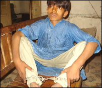 اسد نے بتایا کہ اس کا والد جھگڑے کے ایک مقدمے میں جیل میں بند ہے جبکہ گھر میں نو چھوٹے بہن بھائی ہیں، ماں اسے مزدوری کرکے پیسے لانے کو کہتی تھی۔ شہر کے پسماندہ علاقے شیدی گوٹھ کا رہائشی اسد خاصخیلی ناخواندہ ہے اس کے مطابق وہ کباڑی کا کام کرتا اور ایک ٹھیلے پر سامان جمع کرتا تھا وہ عادی چور نہیں ہے۔ اس نے بتایا کہ اس نے واٹر پمپ پانچ سو روپے میں کباڑی کو بیچا تھا۔ پولیس نے اس پر تشدد کیا اور اسے بڑے ملزموں کے ساتھ حوالات میں بند کر دیا تھا۔ حیدرآباد پولیس کے ایک اے ایس آئی اور ایک ہیڈ محرر کو معطل کیا گیا ہے مگر حکام پولیس کو بے قصور سمجھتے ہیں۔ ڈی پی او حیدرآباد پرویز چانڈیو نے کراچی میں بی بی سی اردو ڈاٹ کام سے بات کرتے ہوئے کہا کہ پولیس بے قصور ہے کیونکہ اس سے قبل تین مرتبہ ان بچوں کو چوری کرتے پکڑا گیا تھا مگر راضی نامہ کرکے معاملہ رفع دفع کیا گیا۔ انہوں نے کہا کہ چوتھی مرتبہ تینوں بچوں کو چوری کے سامان سمیت تھانے پر لایا گیا اور مدعی نے ان پر مقدمہ درج کروایا۔ ڈی پی او کے مطابق انسانی ہمدردی کے تحت چھ سالہ سعید کو ایس پی انویسٹیگیشن نے خود آزاد کردیا تھا جبکہ اسد کو عدالت میں پیش کیا گیا جسے جیل بھیج دیا گیا۔ پرویز چانڈیو نے ایک سوال کے جواب میں بتایا کہ قاسم آباد پولیس کے پاس حوالات کی عمارت نہیں ہے اس لئے بچوں کو تفتیشی پولیس نے پیروں میں زنجیر باندھ دی تھیں جس پر انچارج اور ہیڈ محرر کو معطل کیا گیا ہے۔ واضح رہے کہ پاکستان جونائیل جسٹس سسٹم آرڈیننس کے تحت پولیس تیرہ سال تک کے بچوں کو حوالات میں نہیں رکھ سکتی۔ | اسی بارے میں بچوں کو سب سے زیادہ خطرہ ہے15 October, 2005 | پاکستان بچے شکایت درج کرا سکیں گے25 November, 2004 | پاکستان ’اوپر سے حکم آئےگا تو بچہ ملےگا‘14 November, 2005 | پاکستان زلزلہ: 16 لاکھ بچوں کو سردی کا سامنا14 January, 2006 | پاکستان پاکستانی جیلوں میں قید بچے12 July, 2004 | پاکستان بے سہارا بچوں کی بہبود کا قانون08 June, 2004 | پاکستان | ||||||||||||||||||||||||||||||||||||||||