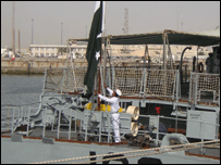 چوبیس اپریل کی تپتی دوپہر کو بحرین کی بندر گاہ مینا سلمان پر لنگر انداز ہالینڈ کے جہاز کے ’ڈیک‘ پر سفید شامیانے تلے سفید وردیوں میں ملبوس امریکہ، پاکستان، ہالینڈ اور بحرین سمیت کئی ممالک کی بحری افواج کے اہلکار اور افسران جمع ہوئے۔ بحریہ کی روایت کے مطابق مخصوص سیٹی بجا کر سرکاری مہمانوں کی آمد اور استقبال کا سلسلہ ختم ہوا اور دنیا کی پچیس لاکھ مربع میل سمندری حدود کی حفاظت پر مامور امریکہ اور ان کی اتحادی افواج کے تین اہم ’ٹاسک فورسز‘ میں سے سب سے بڑے یعنی ’ٹاسک فورس 150‘ کی کمان پاکستان بحریہ کے ریئر ایڈمرل شاہد اقبال کے سپرد کی گئی۔