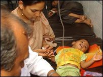 گیسٹروانٹرائٹس سے ہلاک ہونے والے افراد کے نام کچھ یوں بتائے جارہے ہیں پانچ سالہ ایمن، آٹھ سالہ ارم، دس سالہ فرحت، پینتیس سالہ آمنہ، پینسٹھ سالہ رمضان، دس سالہ احسان اللہ، ایک سو پانچ سالہ سکینہ مائی، سترہ سالہ گلشن، چھ سالہ اسامہ، پینتالیس سالہ غلام حسین اور آٹھ سالہ محمد رمضان۔ میونسپیلٹی کی طرف سے اگرچہ مضر صحت فراہمی آب کی روک تھام کا فوری حل نظر نہیں آرہا لیکن جمعرات کے روز دن بھر یہ اعلانات کرائے جاتے رہے کہ شہری پانی ابال کر پیئیں اور ریڑھیوں سے کٹے پھٹے پھل خریدنے سے اجتناب کریں۔ ضلعی انتظامیہ نے ساتھ ہی دفعہ ایک سو چوالیس کے تحت گلے سڑے پھل اور غیر معیاری مشروبات فروخت کرنے پر پابندی لگا دی ہے۔ | اسی بارے میں کراچی: آلودہ پانی سے 70 افراد بیمار24 May, 2006 | پاکستان شاہجہان کی نہر اب گندہ نالہ 29 May, 2006 | پاکستان | ||||||||||||||||||||||||||||||||||||||||