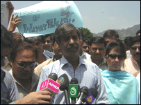 اس موقع پر مظاہرین سے خطاب کرتے ہوئے مقررین نے ملک کی خفیہ ایجنسیوں پر حیات اللہ کو قتل کرنے کا الزام لگایا۔ ان کا کہنا تھا کہ مرحوم صحافی گزشتہ چھ ماہ سے لاپتہ تھے اور اس دوران ان کے فیملی اور صحافیوں کے نمائندوں نے کئی بار ان کی گمشدگی کو اعلی حکام کے نوٹس میں لایا لیکن افسوس کہ کسی نے بھی توجہ نہیں دی۔مقررین نے حکومت سے مطالبہ کیا کہ حیات اللہ کے قاتلوں کو بے نقاب کرکے ان کو قرار واقعی سزا دی جائے۔ اس موقع پر صحافیوں کے نمائندوں نے گورنر سرحد کے پریس سیکرٹری کو ایک یاداشت بھی پیش کی جس میں گورنر سے مرحوم صحافی کے قاتلوں کو فوری طورپر بے نقاب کرنے کا مطالبہ کیاگیا ہے۔ واضع رہے کہ صحافی حیات اللہ کو گزشتہ دسمبر کے مہینے میں ان کے گھر کے نزدیک سے بعض نامعلوم نقاب پوشوں نے بندوق کے نوک پر اغواء کیا تھا۔ وہ چھ ماہ سے لاپتہ تھا جبکہ گزشتہ روز اس کی گولیوں سے چلنی لاش ملی تھی۔ اس کے بھائی احسان اللہ مسلسل خفیہ ایجنسیوں پر اسکے اغواء کا الزام لگاتا رہا ہے۔ مرحوم صحافی کے قریبی ذرائع کا کہنا ہے کہ حیات اللہ نے اس امریکی میزائل کے ٹکڑوں کی تصویر بنائی تھی جس سے مبینہ طورپر القاعدہ کے ایک اہم آپریشنل کمانڈر ابو حمزہ ربیعہ کو نشانہ بنایا گیا تھا۔ مذکورہ القاعدہ رہنما کے بارے میں صدر پرویز مشرف نے بین الااقوامی ذرائع ابلاغ کو بتایا تھا کہ وہ اپنے گھر میں بم بناتے ہوئے ہلاک ہوا ہے جبکہ حیات اللہ کی جانب سے غیر ملکی میڈیا کو جاری کی گئی تصویر میں اس بات کو شواہد سے ثابت کیا گیا تھا کہ القاعدہ رہنما امریکی میزائل حملے میں ہلاک ہوا تھا۔ صوبہ سرحد کی اسمبلی نے بھی آج بجٹ اجلاس کے آغاز پر معمول کی کارروائی روکتے ہوئے ایک متفقہ قرار داد منظور کی جس میں قبائلی صحافی حیات اللہ خان کی ہلاکت کی مذمت کرتے ہوئے مرکزی حکومت سے صحافیوں کو تحفظ دینے کا مطالبہ کیا گیا ہے۔ قرار داد حزب اختلاف کی جانب سے پیپلز پارٹی کے عبدالاکبر خان اور ایم ایم اے کی جانب سے مولانا فضل علی حقانی کے مشترکہ طور پر ایوان میں پیش کی۔ قرار داد میں وفاقی حکومت سے قبائلی علاقوں میں نو گو ایریاز کے خاتمے کا بھی مطالبہ کیا گیا۔ | اسی بارے میں پشاور:صحافی کی بازیابی کیلیےمظاہرہ18 February, 2006 | پاکستان پشاور: ’صحافیوں کوتحفظ دیں‘20 December, 2005 | پاکستان بی بی سی صحافی کےگھرکےباہردھماکہ 16 December, 2005 | پاکستان فاٹا میں صحافی کا اغواء05 December, 2005 | پاکستان صحافی: بغیر وارنٹ گرفتاری جائز16 May, 2005 | پاکستان اسلام آباد: صحافیوں کا بائیکاٹ19 April, 2005 | پاکستان | ||||||||||||||||||||||||||||||||||||||||