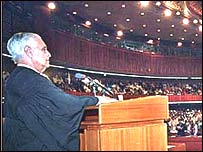 نجکاری کمیشن کے ایک اور سابق چیئرمین خواجہ آصف نے کہا کہ انہیں ناکردہ گناہوں کی سزا دی گئی اور اٹک قلعہ میں رکھا گیا لیکن اتنی بڑی بدعنوانی فوج کو کیوں نظر آرہی؟ حافظ حسین احمد اپنے روایتی انداز میں تبصرہ کرتے ہوئے کہا کہ شوکت عزیز تو بڑے چھپے رستم نکلے! قبل ازیں متحدہ مجلس عمل کے سرکردہ رہنما لیاقت بلوچ نے نکتہ اعتراض پر کہا کہ سپریم کورٹ نے سٹیل ملز کی نجکاری میں بدعنوانیوں کی نشاندہی کے متعلق اہم نکات اٹھائے ہیں لہٰذا اس پر ایوان میں بحث کرائی جائے۔ پارلیمانی امور کے وزیر ڈاکٹر شیرافگن نیازی نے کہا کہ انہیں عدالت کا تفصیلی فیصلہ پڑھنے کے لیے دو روز کی مہلت دی جائے۔ جس پر حزب مخالف کے کئی اراکین اپنی نشستوں پر کھڑے ہوکر ڈیسک بجاتے رہے۔ انہوں نے پرزور انداز میں ’گو مشرف گو‘ اور’ گرتی ہوئی دیواروں کو ایک دھکا اور دو‘ کے نعرے لگائے۔ اس دوران ایوان میں شدید شور مچ گیا اور دیکھتے ہی دیکھتے اراکین سپیکر کے روسٹرم کے سامنے آ کر نعرے لگانے لگے۔ سپیکر نے بعد میں اجلاس کی کارروائی جمعہ کی صبح تک کے لیئے ملتوی کردی اور حزب مخالف سے کہا کہ وہ ان کے چیمبر میں ان سے مل کر طے کرلیں کہ کارروائی کیسے چلانی ہے تاکہ تعطل پیدا نہ ہو۔ | اسی بارے میں اپوزیشن نے سینٹ کا اجلاس بلا لیا24 September, 2005 | پاکستان سنیٹ سے اپوزیشن کا واک آؤٹ23 December, 2005 | پاکستان انتخابات: اپوزیشن پارٹیوں کا اتحاد18 July, 2005 | پاکستان حکومت کے خلاف اپوزیشن کا احتجاج17 September, 2005 | پاکستان باجوڑ، بلوچستان، اپوزیشن واک آؤٹ19 January, 2006 | پاکستان اپوزیشن کا وفد روک لیا گیا23 January, 2006 | پاکستان اپوزیشن تین مارچ کو ہڑتال کرے گی27 February, 2006 | پاکستان پاکستان کی اصل اپوزیشن 25 May, 2006 | پاکستان | ||||||||||||||||||||||||||||||||||||||||