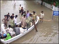 مریضوں کی بڑھتی ہوئی تعداد کے بعد ادویات کی قلت پیدا ہوگئی ہے۔ لطیف آباد میں قائم ایک طبی کیمپ میں پندرہ سے اٹھارہ سو مریض پہنچ رہے ہیں۔ لطیف آباد سے پانی نکالنے کے لیے روڈ کاٹ کردو مقامات پر تین چار کلومیٹر لمبے نالے کھودے گئے ہیں۔ لیکن ڈھلوان نہ ہونے کی وجہ سے یہ ترکیب بھی کام نہ کرسکی ہے۔ اب پمپنگ مشینوں کے ذریعے ان نالوں سے پانی دریائے سندھ میں ڈالا جا رہا ہے۔ امدادی سرگرمیوں میں مصروف ایک فوجی افسر کا کہنا ہے کہ ’یہ احسان فراموشی والا کام ہے۔ ہم پر تنقید کی جاتی ہے کہ ہم ادھر ادھر کشتیاں چلاتے رہتے ہیں۔ لوگوں کو کھانا، پینے کا پانی اور دوسری اشیاء نہیں پہنچا رہے ہیں۔‘ بارش کے دوسرے روز وزیراعلی سندھ ارباب غلاًم رحیم نے بھی حیدرآباد کا دورہ کیا لیکن وہ پانی میں نہیں جا سکے۔ پیپلز پارٹی مطالبہ کر رہی ہے کہ ضلعی حکومت لوگوں کی مدد کرنے اور پانی کی نکاسی میں ناکام رہی ہے لہذا اسے استعفی دینا چاہیے۔ سندھ آباد کار بورڈ کا کہنا ہے کہ سندھ کے دس اضلاع حیدرآباد، مٹیاری، ٹنڈو محمد خان، ٹنڈو الہیار، میرپورخاص، سانگھڑ، عمرکوٹ، نوابشاہ ٹھٹہ اور بدین میں بارش کی وجہ سے بڑی تباہی آئی ہے۔ سندھ ہائی کورٹ نے ریلیف کمشنر سندھ کو ایک ہفتے کی مہلت دی ہے کہ ایک ہفتے کے اندر حیدرآباد شہر سے برسات کا پانی نکالا جائے۔ دو ججوں پر مشتمل عدالت نے حکومتی اہلکاروں کی کارکردگی پر افسوس کا اظہار کیا۔ عدالت نے ایڈیشنل ایڈوکیٹ جنرل، پانچ اضلاع کے ڈی سی اوز، ریلیف کمشنر اور دیگر اہلکاروں کو ایک آئینی درخواست پر طلب کیا تھا۔ ریلیف کمشنر نے عدالت کو یقین دہانی کرائی کہ ایک ہفتے کے اندر بارش کا پانی نکال کردیا جائے گا۔ | اسی بارے میں حیدرآباد کے کئی علاقے زیر آب10 September, 2006 | پاکستان کراچی: بارشوں سے ہنگامی صورتحال17 August, 2006 | پاکستان اندرون سندھ بارشیں، 12 ہلاک09 September, 2006 | پاکستان کوئٹہ کے لیئے ٹرین سروس معطل27 August, 2006 | پاکستان بارش کے بعد عام تعطیل، 25 ہلاک18 August, 2006 | پاکستان سندھ: جان لیوا بارشیں، 30 ہلاک01 August, 2006 | پاکستان | ||||||||||||||||||||||||||||||||||||||||