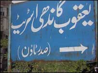 اسی طرح بندر روڈ المعروف ایم اے جناح روڈ پر لائیٹ ہاؤس کے قریب موجود گلی آج کل یعقوب گاندھی اسٹریٹ بن گئی ہے مگر کچھ عرصے قبل تک یہ صرف گاندھی اسٹریٹ کے نام سے پہچانی جاتی تھی جس کی گواہی اس گلی کے چاروں طرف موجود عمارتیں دے رہی ہیں۔ پاکستان کی آزادی سے قبل موجودہ سندھ ہائی کورٹ کی عمارت کے سامنے اہنسا کے مفکر موہن داس کرم چند کا ایک دیوقامت کانسی کا مجسمہ نصب تھا جو آزادی کے ایک سال بعد انیس سو اڑتالیس میں ہٹا دیا گیا۔ معروف کالم نویس اردشیر کاؤسجی نے اس واقعے کو یوں بیان کیا ہے: ’انیس سو اکتیس سے یہ مجسمہ ہائی کورٹ کی عمارت کے باہر چوک پر نصب تھا۔ مگر جنوری 1948 میں کراچی میں ہندو مسلم فسادات پھوٹ پڑے اور بڑی تعداد میں ہندو کوچ کر گئے ان کی املاک پر قبضہ کیا گیا۔‘