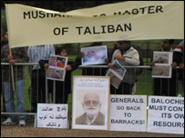 بلوچ قوم پرستوں نے نواب اکبر بگٹی کی ہلاکت کے خلاف احتجاج کیا اور بلوچستان میں فوجی آپریشن بند کرنے کا مطالبہ کیا ہے۔ مظاہرین سے خطاب کرتے ہوئے مقررین نے کہا کہ پاکستان دہشت گردی کا گڑھ بن چکا ہے۔ ’پاکستان اور صدر مشرف القاعدہ اور طالبان جنگجوؤں کی سرپرستی کر رہے ہیں۔‘ مقررین نے بین الاقوامی برادری سے بھی اپیل کی کہ وہ اپنا اثرو رسوخ استعمال کر کے قوم پرستوں کے خلاف ظلم کو بند کروائیں۔ | اسی بارے میں ’وزیرستان معاہدہ ملا عمر نے کرایا‘ 25 September, 2006 | پاکستان بینظیر، نواز کے لیئے مزید انتظار 26 September, 2006 | آس پاس باہمی اختلافات دور کریں: بش28 September, 2006 | آس پاس ’ کتاب سکیورٹی رسک ہے‘27 September, 2006 | پاکستان | ||||||||||||||||||||||||||||||||||||||||