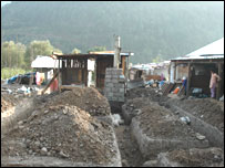 زلزلے کو ایک سال ہونے کو ہے لیکن پاکستان کے زیر انتظام کشمیر میں زلزے سے متاثرہ دیہی علاقوں میں گھروں کی تعمیر کی رفتار خاصی سست ہے جس کا ذمہ دار لوگ زلزے سے متعلق پاکستان کے تعمیر نو اور بحالی کے ادارے کو ٹھہراتے ہیں ۔ حکام بھی یہ تسلیم کرتے ہیں کہ بیشتر متاثرین اس سال سردیوں سے پہلے اپنے گھر تعمیر نہیں کر پائیں گے اور بیشتر متاثرین کو اس سال سردیاں بھی ان کو خیموں یا عارضی رہائش گاہوں میں گزارنا پڑیں گی۔ وادی جہلم کے گاؤں کھٹائی کے رہائشی مصدق اقبال کے گھر میں ترکھان اور مستری کام میں مصروف ہیں ۔ مصدق اقبال کہتے ہیں کہ ’مجھے امید ہے کہ یہ ایک ماہ میں مکمل ہوجائے گا اور ہم سردیوں سے پہلے اپنے نئے گھر میں منتقل ہوجائیں گے۔‘