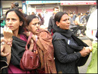 انہوں نے کہا ’چند خواتین تھیں ان کے پاس ہتھیار نہیں تھے وہ احتجاج کر رہی تھیں جو ان کا بنیادی حق ہے۔ ارباب رحیم چند نہتی عورتوں سے خوفزدہ ہوگئے ہیں‘۔ صدر ٹاؤن کے پولیس افسر نے بتایا کہ خواتین کو حراست میں نہیں لیا گیا تھا۔ ان کے مطابق وہ ٹریفک میں رخنہ پیدا کر رہی تھیں اس لیے انہیں ریگل چوک سے ہٹا کر دوسری جگہ پر چھوڑ دیا گیا۔ ان کا کہنا تھا کہ کسی کو بھی معمولاتِ زندگی متاثر کرنے کی اجازت نہیں دی جاسکتی ۔ | اسی بارے میں وزیراعلٰی کے خلاف تحریک استحقاق23 June, 2006 | پاکستان پی پی پی (ن) لیگ کواعتراض بتائے گی21 January, 2007 | پاکستان ٹیکسیوں کی درآمد، حکومت کا اعتراف19 January, 2007 | پاکستان وزیراعظم کے لیے امیدوار ہوں: بینظیر06 January, 2007 | پاکستان پیپلز پارٹی: انقلاب سے احتساب تک26 November, 2006 | پاکستان | ||||||||||||||||||||||||||||||||||||||||
