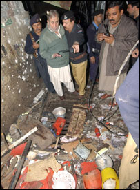 زخمیوں کو لیڈی ریڈنگ ہسپتال لے جایا گیا ہے جہاں افراتفری کا سماں تھا۔ پولیس نے شعبہ حادثات کو گھیرے میں لے کر صحافیوں کو بھی اندر جانے کی اجازت نہیں دی۔ تا حال کسی نے ابھی اس واقعے کی ذمہ داری قبول نہیں کی ہے۔ وزیر اعلی اکرم خان درانی کا کہنا تھا کہ اس حملے کا بظاہر ہدف پولیس تھی۔ ملک سعد تقریبا دو ماہ قبل ہی ڈی آئی جی بنوں عابد علی کی ہلاکت کے واقعہ کے بعد پشاور سٹی پولیس چیف تعینات ہوئے تھے۔ ماضی کے برخلاف پشاور میں محرم کے آغاز ہی کڑے سکیورٹی انتظامات کیے گئے تھے۔ اس واقعے کے بعد شہر میں فرنٹئیر کور اور کانسٹیبلری کی مزید نفری تعینات کر دی گئی ہے۔ قدرے تاخیر سے لیکن سکیورٹی فورسز کی بھاری نفری کی موجودگی میں امام بارگاہ سے وہ ماتمی جلوس نکلا اور مقررہ روٹ سے ہوتا ہوا واپس اسی امام بارگاہ پہنچ کر اختتام پذیر ہوا۔ سرکاری بیان کے مطابق تحقیقات کے لیے ایک کمیٹی تشکیل دے دی گئی ہے جبکہ صوبے کے دیگر علاقوں میں بھی سکیورٹی فورسز کو الرٹ کر دیا گیا ہے۔وزیراعلٰی کی سربراہی میں اعلی سطح کا ایک اجلاس صورتحال پر غور کے لیے رات گئے تک جاری تھا۔ | اسی بارے میں پشاور ’خودکش‘ حملہ، ایک ہلاک17 November, 2006 | پاکستان پشاور میں دھماکہ ،ایک ہلاک01 December, 2006 | پاکستان پشاورایئرپورٹ: بم دھماکہ،ایک ہلاک26 December, 2006 | پاکستان پشاور میں درجنوں دکانیں جل گئیں19 January, 2007 | پاکستان | ||||||||||||||||||||||||||||||||||||||||