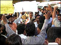 پنجاب کے جنوبی شہر بہاولنگر میں پولیس نے شہر بھر کے تقریبا تمام صحافیوں کے خلاف مقدمہ درج کر لیا ہے۔ ان پر الزام ہے کہ انہوں نے جلسے جلوس پر پابندی کے باوجود ایک احتجاجی ریلی نکالی تھی۔ تھانہ سٹی بہاولنگر میں درج ہونے والے مقدمے میں پندرہ صحافیوں کو براہ راست نامزد کیا گیا ہے جبکہ اس میں دیگر صحافیوں کا بھی ذکر ہے۔ دو روز قبل اسلام آباد میں نجی ٹی وی چینل جیو کے دفتر پر حملے اور سنیچر کو لاہور میں ہڑتال کی کوریج کرنے والے صحافیوں پر مبینہ پولیس تشدد کے خلاف پنجاب کے نسبتًا پسماندہ ضلعے کے صحافیوں نے سنیچر کو احتجاجی جلوس نکالا تھا۔ صحافیوں کا یہ جلوس پہلے پریس کلب سے ضلعی کچہری گیا اور وکلاء کے ہڑتالی کیمپ میں شریک ہوا۔ بعدازاں صحافی جلوس کی شکل میں رفیق شاہ چوک تک گئے۔ صحافیوں نے احتجاجی بینر اور پوسٹر اٹھا رکھے تھے جن پر درج تھا: ’آزادی صحافت پر قدغن نامنظور‘ اور’صحافیوں پر ظلم و تشدد بند کرو‘۔ صحافی حکومت کے خلاف نعرے بازی بھی کررہے تھے۔ اگرچہ اسی نوعیت کے احتجاجی جلوس اور مظاہرے لاہور، اسلام آباد پشاور، کراچی اور گوجرانوالہ سمیت ملک کے مخلتف شہروں میں ہوئے ہیں لیکن مقدمہ ابھی تک صرف بہاولنگر کے صحافیوں کے خلاف درج کیا گیا ہے۔ پولیس کا کہنا ہے کہ شہر میں دفعہ ایک سو چوالیس نافذ تھی جس کے تحت جلسے جلوسوں پر پابندی ہے اور صحافیوں نے اس پابندی کی خلاف ورزی کی ہے۔ ابھی تک پولیس نے کسی صحافی کو گرفتار نہیں کیا تاہم بہاولنگر پریس کلب کے جنرل سیکرٹری شفیق خان نے بی بی سی کو بتایا ہے کہ انہوں نے احتجاج کے طورپر ازخودگرفتاری پیش کرنے کا فیصلہ کیا ہے۔ پیر کو پریس کلب میں تمام صحافی اکٹھے ہونگے اورصلاح مشورے کے بعد تھانے یا ضلعی پولیس افسر کے دفتر جاکرخود کوگرفتاری کے لیے پیش کردیں گے۔ | اسی بارے میں کراچی، کوئٹہ: صحافیوں کا احتجاج16 March, 2007 | پاکستان لاہور میں جھڑپیں، متعدد زخمی17 March, 2007 | پاکستان جسٹس افتخار جبری چھٹی پر17 March, 2007 | پاکستان جسٹس افتخار پر پابندیاں برقرار17 March, 2007 | پاکستان جیو ٹی وی پر حملہ ایک ’سازش‘17 March, 2007 | پاکستان صحافی اور وکلاء پر تشدد کی مذمت17 March, 2007 | پاکستان جیو پرحملہ کے ذمہ دار اہلکار معطل17 March, 2007 | پاکستان ہڑتال، بائیکاٹ اور مظاہرے جاری18 March, 2007 | پاکستان | ||||||||||||||||||||||||||||||||||||||||
