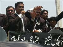 ملک محمد قیوم، جہانگیر اے جھوجھہ اور محمد عالمگیر، لاہور بار ایسوسی ایشن کے صدر رہ چکے ہیں اور ان کے نام بھی صدور کے ناموں کی تختی سے بھی ہٹانے کا اعلان کیا گیا۔ لاہور بار ایسوسی ایشن کے سیکرٹری شمیم ملک نے بتایا کہ بار نے جن وکلا کی رکنیت ختم کی ہے ان کے بار میں داخلہ پر بھی عائد کردی گئی ہے۔جسٹس (ر) ملک محمد قیوم سپریم کورٹ بار ایسوسی ایشن کے صدر بھی رہ چکے ہیں جبکہ سپریم کورٹ بار ایسوسی ایشن نے لاہور میں ہونے والے حکومتی وکلا کنونشن میں شرکت کرنے پر جہانگیر اے جھوجھہ اور محمد عالمگیر کی سپریم کورٹ بار کی رکنیت منسوخ کی تھی لیکن لاہور ہائی کورٹ نے ان دونوں وکلا کی درخواست پر ایک عبوری حکم کے ذریعے ان کی رکنیت بحال کردی۔ اجلاس کے دوران ایک وکیل میاں تبسم نے حکومتی موقف کی حمایت کرنے پر تحریری معافی مانگ لی جس پر بار نے وکیل کے خلاف کارروائی نہ کرنے کا فیصلہ کیا۔ میاں تبسم حکمران جماعت کی رکن پنجاب اسمبلی اور لاہور بار کی سابق نائب صدر مصباح کوکب کے بھائی ہیں۔ دوسری جانب سپریم کورٹ بار ایسوسی ایشن کے سابق صدر ملک قیوم کی طرف سے جاری ہونے والے بیان میں کہا گیا کہ انہوں نے لاہور اور ملتان کی ضلعی بار ایسوسی ایشن کے صدور سید محمد شاہ اور اکرم بھٹی کے خلاف سپریم کورٹ کے روبرو توہین عدالت کی درخواست دائر کی ہے۔ توہین عدالت کی درخواست میں ملک قیوم نے کہا کہ انہیں چیف جسٹس پاکستان کے بارے میں سپریم کورٹ کے روبرو زیر سماعت درخواست میں وفاقی حکومت کی پیروی کرنے سے روکا جارہا ہے اور ان کی بار کی رکنیت ختم کرنے کی دھمکیاں دی جارہی ہیں۔ درخواست میں مزید کہا گیا کہ ملتان اور لاہور کے صدور ان کا استحقاق مجروح کررہے ہیں، دونوں صدور کو ہدایت کی جائے کہ وہ انصاف کی فراہمی کے عمل میں رکاوٹ نہ بنیں۔ |