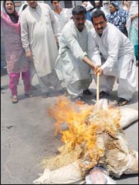 کراچی میں ہنگاموں کےخلاف اے آر ڈی اور ایم ایم اے میں شامل جماعتوں کی کال پر اندرون سندھ کے سارے ضلع ہیڈ کوارٹرز میں احتجاجی مظاہرے اور ریلیاں ہوئی ہیں۔ حیدرآباد، نواب شاہ، لاڑکانہ، قمبر شہداد کوٹ، سکھر اور جیکب آباد سمیت سارے شہروں اور تحصیل ہیڈ کوارٹروں میں احتجاجی جلوس نکالے گئے۔ پولیس حکام کے مطابق شکارپور کے جہاز چوک پر واقع ایم کیو ایم کے زونل دفتر کو نامعلوم افراد نے آگ لگا دی۔ایم کیو ایم کے مقامی رہنماؤں نے کسی کے خلاف ایف آئی آر درج نہیں کروائی۔ جیکب آباد میں پی پی پی، جی یو آئی اور ایس ٹی پی کے جلوس کے دوران مشتعل لوگوں نے شہر میں لگے ہوئے ایم کیو ایم کے جھنڈوں کو آگ لگا دی۔ ایم کیو ایم کے سربراہ الطاف حسین کے پتلے بھی نذر آتش کیئے گئے۔ سکھر اور نواب شاہ میں کراچی کے ہنگاموں کے دوران ہلاک شدگان کے لیے غائبانہ نماز جنازہ ادا کی گئی۔ سندھ کے قوم پرست رہنما رسول بخش پلیجو کی جماعت عوامی تحریک کی جانب سے ان کے ایک کارکن محمد نواز کنرانی کی کراچی میں ہلاکت کے خلاف حیدرآباد، بدین، ٹھل اور دیگر چھوٹے بڑے شہروں میں شٹر بند ہڑتال کی گئی۔ تحریک نفاذ فقہ جعفریہ پاکستان نے پیر کو پورے ملک میں کراچی کے واقعات کے بعد یوم دعا منانے کا اعلان کیا ہے۔ | اسی بارے میں کراچی کی ’جنگ‘ کس نے جیتی؟12 May, 2007 | پاکستان کراچی میں ہنگامے، چونتیس ہلاک12 May, 2007 | پاکستان چیف جسٹس کے وکلاء ’صوبہ بدر‘12 May, 2007 | پاکستان صدر کے جلسے کی تیاریاں مکمل12 May, 2007 | پاکستان پشاور: پیر سے پیہہ جام ہڑتال12 May, 2007 | پاکستان دھماکہ:سابق فراری کمانڈر زخمی12 May, 2007 | پاکستان کراچی: مزید ہلاکتیں، رینجرز تعینات13 May, 2007 | پاکستان کراچی کے خون سے اخبارات رنگے رہے13 May, 2007 | پاکستان | ||||||||||||||||||||||||||||||||||||||||