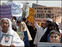 پاکستان میں مبینہ طور پر لاپتہ ہونے والے افراد کی بازیابی کے لیے سرگرم ڈیفنس آف ہیومن رائٹس نامی تنظیم کی جانب سے ملگ گیر سطح پر احتجاجی مظاہروں کے اعلان کے بعد اس سلسلے کا پہلا مظاہرہ پیر کو پشاور میں ہوا جس میں گمشدہ افراد کے درجنوں لواحقین نے شرکت کی۔ پشاور ہائی کورٹ سے پریس کلب تک اس احتجاجی مظاہرے میں مبینہ طور پر لاپتہ ہونے والے افراد کے لواحقین نے گمشدہ افراد کی بڑی بڑی تصاویر اٹھا رکھی تھیں اور حکومت کے خلاف نعرے لگاتے رہے۔ مظاہرے میں صوبہ پنجاب اور صوبہ سرحد کے مختلف علاقوں سے تعلق رکھنے والے لاپتہ افراد کے عزیز و اقارب نے شرکت کی جن میں زیادہ تعداد خواتین کی تھی۔ ڈیفنس آف ہیومن رائٹس نامی تنظیم گمشدہ افراد کی بازیابی کے لیے دو ہزار چھ میں بنائی گئی تھی اور بقول آمنہ جنجوعہ وہ اگلے چند دنوں کے دوران احتجاج کا دائرہ وسیع کرتے ہوئے پنجاب کے مختلف شہروں سے مظاہروں کاآغاز کریں گے اور اس سلسلے کا اگلا مظاہرہ لاہور ہائی کورٹ کے سامنے منعقد ہوگا۔ بعد میں پشاور پریس کلب میں ایک نیو ز کانفرنس سے خطاب کرتے ہوئے دو ہزار چھ سے لاپتہ مسعود احمد جنجوعہ کی بیوی اور ڈیفنس آف ہیومن رائٹس کی فعال رہنما آمنہ مسعود نے کہا کہ خفیہ اداروں کی جانب سے مبینہ طور پر اٹھائے گئے تقریباً چھپن افرار کا پتہ چل گیا۔