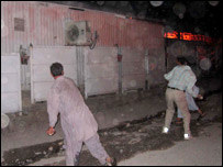 اسی دوران بپھرے ہوئے ہجوم نے مذہبی تنظیم جماعت الدعوۃ کے زیر اہتمام چلنے والے ہسپتال اور اس کے عملے کی رہائش گاہوں کو نذر آتش کردیا۔ جماعت الدعوۃ کے ترجمان آفتاب حسین نے اس کی تردید کی کہ ان کے کسی کارکن نے گولی چلائی۔ انہوں نے اس کی بھی تردید کی وہ کسی کی نجی زمین میں تعمیر کررہے تھے۔ انہوں نے کہا کہ وہ ہسپتال سےملحق حکومت کی طرف سے فراہم کی جانے والی زمین پر تعمیر کر رہے تھے۔ تنظیم کا یہ بھی کہنا ہے کہ ہسپتال کو نذر آتش کرنے کے واقعہ کے پیچھے ان لوگوں کا ہاتھ ہوسکتا ہے جو تنظیم کے زیرِ اہتمام چلنے والے اس ہسپتال کی زمین پر قبضہ کرنا چاہتے ہیں۔ جماعت الدعوۃ نے یہ ہسپتال زلزلے کے بعد قائم کیا تھا اور تنظیم کے ترجمان کا کہنا ہے کہ انہوں نے حکومت سے زمین کی لیز حاصل کی ہوئی ہے۔ مظفرآباد کے اسسٹنٹ کمشنر مسعودالرحمان کا کہنا ہے کہ وہ واقعہ کی تحقیقات کر رہے ہیں اور ساتھ ہی ان کا کہنا تھا کہ مقامی نوجوان کی ہلاکت مبینہ طور پر جماعت الدعوۃ کے اہلکار کی فائرنگ سے ہوئی ہے۔ مسعود الرحمان نے بتایا کہ اس واقعہ کے بعد اٹھارہ افراد کو حراست میں لیا گیا ہے۔ |