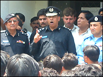 اسلام آباد میں چند ماہ قبل لال مسجد کی وجہ سے پیدا کشیدگی پر قابو پانے کے لیے طلب کیےگئے پنجاب پولیس کے بارہ سو جوانوں نے پانچ گھنٹے تک احتجاج کیا ہے۔ انہوں نے اس دوران اپنے ایک افسر کی پٹائی بھی کی جو انہیں منتشر ہونے کے احکام جاری کر رہا تھا۔ حکام نے اس پولیس نفری کے نگران ایس پی اشرف گجر کو عہدے سے معطل کرتے ہوئے ان کے خلاف محکمانہ کارروائی کا حکم دے دیا ہے۔ پنجاب کنسٹیبلری کے جوان کہتے ہیں کہ وہ اپنے ایک ساتھی کی موت کی وجہ سے اس غیر وفاقی دارالحکومت میں جی سِکس کے سرکاری فلیٹس میں پڑے ان مشتعل جوانوں نے منگل کی صبح سے ہی آبپارہ کے علاقے میں چوراہوں کو ٹریفک کے لیے بند کر دیا جس سے دفاتر جانے والے عام شہریوں کو شدید مشکلات کا سامنا کرنا پڑا۔