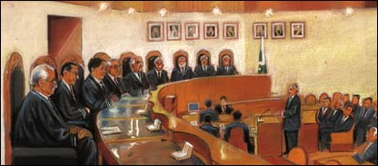 عدالت نے کہا کہ سینئر وکیل اعتزاز احسن پچھلے دو مہینوں سے عدالت کو بتا رہے تھے کہ خفیہ ایجنسیاں عدالت سے ریکارڈ چوری کر کے ججوں کے خلاف مواد اکٹھا کر رہی ہیں اور ججوں کی ذاتی زندگی سے متعلق معلومات اکٹھی کرنے کی کوشش کی جا رہی ہے۔ عدالت نے کہا کہ وہ بیرسٹر اعتزاز احسن کی باتوں پر دھیان نہیں دیتی تھی لیکن حکومت کی طرف سے دستاویزات عدالت کے ریکارڈ پر آنے کے بعد عدالت مجبوراً انٹیلجنس ایجنسیوں کے اہلکاروں کی سپریم کورٹ اور ہائی کورٹس میں داخلے پر پابندی لگا رہی ہے۔ عدالت نے کہا کہ عدالتوں کا کوئی اہلکار انٹیلیجنس ایجنسوں کے اہلکاروں کے مانگنے پر کوئی دستاویز ان کے حوالے نہ کرے۔ تیرہ رکنی فل کورٹ نے حکم جاری کیا کہ سپریم کورٹ اور ہائی کورٹ کے رجسٹرار عدالت کے حکم کی تعمیل کے پابند ہوں گے اور اگر اس کی خلاف وزری کی گئی تو وہ ذاتی طور پر ذمہ دار ٹھہرائے جائیں گے۔ عدالت نے کہا کہ وکلاء کو صرف عدالتی ریکارڈ تک رسائی ہوگی۔ پیر کے روز عدالت کی تمام کارروائی حکومت کی طرف سے متنازعہ ریکارڈ عدالت کے سامنے پیش کرنے سے متعلق ہوئی۔ مقدمے کی کاررائی منگل کے روز بھی جاری رہے گی۔ | اسی بارے میں چیف جسٹس کا حلف، بار کا بائیکاٹ28 May, 2007 | پاکستان ’خلیفہ سے سوال ہوسکتا تومشرف سے کیوں نہیں‘29 May, 2007 | پاکستان صرف ہم ہی مطعون نہیں:جسٹس رمدے26 June, 2007 | پاکستان عدلیہ ہی قصوروار نہیں:جسٹس رمدے26 June, 2007 | پاکستان ’عدلیہ ہی ذمہ دار نہیں‘27 June, 2007 | پاکستان مقدمہ نہیں بحران ہے: جسٹس رمدے27 June, 2007 | پاکستان | ||||||||||||||||||||||||||||||||||||||||