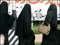 ’ہمیں ان کے جنازے کے حوالے سے کچھ پتہ نہیں ۔ہمیں تو مجاہد بھائیوں کا بھی کچھ پتہ نہیں ہوتا تھا کہ وہ کہاں کہاں ہیں ۔کبھی کبھی ایک دو نظر آجاتے اور پھر غائب ہو جاتے تھے۔‘ عائشہ لیاقت جامعہ حفصہ کی معلمہ ہیں اور ان کا تعلق ملتان سے ہے۔ آٹھ روز مسلسل محاصرے میں رہنے کے بعد اب وہ اپنے گاؤں روانہ ہو چکی ہیں۔رابطہ کرنے پر ان کی آواز سے ان کے رتجگوں کا اندازہ لگانا کوئی مشکل کام نہ تھا۔ جامعہ حفصہ کے اندر گزری آخری رات کا حال بتا تے ہوئے انہوں نے کہا کہ ’یہ بڑی خاموش رات تھی۔کوئی گولہ باری نہیں ہوئی۔جب یہ سلسلہ طویل ہوا تو میں نے اپنی ساتھی طالبات کو یہ مصرع سنایا اور پھر میں نے کہا ’مجھے اس خاموشی کے بعد کے کل سے ڈر لگ رہا ہے۔اور پھر اگلی صبح ٹھیک پونے چار بجے ہماری آنکھ سیکیورٹی فورسز کے حملے سے کھلی۔گولوں کی آوازیں بہت قریب سے آرہی تھیں۔‘ ’میں تو بس دروازے کے سے لگ کر بیٹھ گئی۔چھ بجے مجھے لگا کہ فوجی اندر آگئے ہیں۔ اس کے ساتھ ہی مجاہد بھائیوں کی آوازیں بھی آئیں کہ اندر مت آؤ ورنہ گولی مار دیں گے۔ آخر کار ہمیں باہرآنے کو کہا گیا اور فورسز نے ہمیں کہا کہ اب نقاب الٹ دیں۔ ہم نے ان کو اللہ کا واسطہ دیا کہ ہمیں بے پردہ مت کریں ۔شکر ہے انہوں نے پھر زیادہ زور نہیں دیا۔‘ مصباح طارق کی عمر اٹھارہ سال ہے وہ پچھلے پانچ سال سے جامعہ حفصہ میں زیرتعلیم تھیں۔ ان کا کہنا تھا کہ اگرچہ وہ شہادت کے جذبے سے سرشار آخری وقت تک جامعہ حفصہ کے اندر رہنا چاہتی تھیں لیکن اندر رہنا کوئی آسان کام نہیں تھا۔انہوں نے بتایا ’ہمارے کھانے کے سٹور پر انہوں نے گولہ باری کی تو ہمارے پاس پتے کھانے کے سوا کوئی راستہ نہ تھا۔ بعد میں مجاہد بھائی کہیں سے اسی من شہد لے آئے۔ہم اس کا شربت بنا کر درختوں کے پتوں کے ساتھ پیتے رہے۔سات دن اسی طرح گزرے۔‘ ’آخری دن ہمارا کمرہ دھوئیں سے بھر چکا تھا ۔ہمارا دم گھٹ رہا تھا۔ ہم نے سوچا کہ گھٹ کر مرنے سے بہتر ہے کہ ہم سینے پر گولی کھا کر مر جائیں۔مگر مجاہد بھائیوں نے ہمیں باہر نکلنے سے منع کر دیا۔ بعد میں پولیس والوں نے کہا کہ باہر آجاؤ ورنہ دب کر مر جاؤگے تو تب ہم باہر نکل آئے۔میں تو اب بھی یہ کہتی ہوں کہ یہ دن مجھے کبھی نہیں بھولیں گے۔‘ |