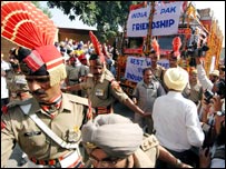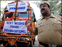 پاکستان اور ہندوستان کے درمیان تجارتی ٹرکوں کی آمد و رفت کا آغاز ہوگیا ہے اور تین ہندوستانی ٹرک پاکستانی حدود میں اشیائے خوردونوش اتار کر چلے گئے۔ اگلے مرحلے پر پاکستانی ٹرک سرحد عبور کریں گے۔ اس سے پہلے دونوں ملکوں کے ٹرک اپنے اپنے ملک کی حدود میں سامان اتار کر واپس چلے جاتے تھے اور قلی اور مزدور یہ سامان سرحد کے دوسری جانب پہنچاتے تھے۔اب ہوا یہ ہے کہ دونوں ملکوں کے ٹرک سرحد عبور کر کے سامان اتار سکیں گے۔ بعض تجارتی حلقوں کا کہنا ہے کہ تجارتی ٹرکوں کی آمد و رفت کی دونوں ملکوں کے تجاری تعلقات میں ایک سنگ میل کی حثیت ہے۔ یہ نیا اقدام دونوں ملکوں کے درمیان جاری اعتماد سازی کے اقدامات کا حصہ ہے اور اس کا فیصلہ دونوں ملکوں کے حکام کے درمیان بیس اگست کو ہوچکا تھا۔ ڈرائیور بلوندر سنگھ پیر کی صبح ہندوستانی ٹماٹروں سے لدا ٹرک لیکر آئے تو پاکستان داخلے کے لیے پاسپورٹ دکھانا پڑا، نہ ویزے کی عدم موجودگی ان کے راستے کی رکاوٹ بن سکی۔ وہ سرحد پر پہنچے تو پاکستانی عملے نے انہیں ایک عارضی اجازت نامہ جاری کر دیا۔  | | | ٹرکوں کے ڈرائیور اور عملے پر ویزے کی پابندی نہیں ہے | پاکستانی محکمۂ کسٹمز کے اسسٹنٹ کلکٹر شجاع حیدر کاظمی نے بتایا کہ حکام کے درمیان طے پانے والے معاہدے کےتحت دونوں طرف کے ڈرائیور اور ٹرک کا دیگر عملہ ویزے، پاسپورٹ کی پابندی سے مستشنیٰ ہوگا، البتہ انہیں موقع پر ایک با تصویر اجازت نامہ جاری کیا جائے گا۔بلوندر سنگھ ٹماٹروں کے چھ سو کریٹ اتار کر واپس چلے گئے لیکن پہلے ٹرک کے سرحد عبور کیے جانے پر دونوں ملکوں کے حکام نے خوشی کا اظہار کیا ہے۔ پاکستانی کسٹمز کے عملے نے بتایا کہ سرحد کے اس پار سے وزیر اعلی مشرقی پنجاب نے بینڈ باجے کے ساتھ ٹرک کو پاکستانی حدود میں روانہ کیا جبکہ پاکستان میں رینجرز اور کسٹمز کے حکام نے استقبال کیا۔ واہگہ کے راستے پاکستان داخل ہونے والے دو ٹرک ٹماٹر اور ایک ٹرک بھینس کا گوشت لیکر آئے تھے۔ ہندوستان سے ٹماٹر درآمد کرنے والے پاکستانی تاجر چودھری محمد مشتاق سے بی بی سی نے پوچھا کہ آخر اس اقدام سے انہیں کیا فائدہ ہوا ہے تو انہوں نے کہا کہ اس سے پہلے قلی اور مزدور آدھ کلومیٹر دور تک سامان لایا لے جایا کرتے تھے اب دونوں ملکوں کے ٹرک ساتھ ساتھ کھڑے کرے سامان منتقل کیا جاسکے گا جس سے لیبر کے اخراجات اور وقت دونوں کی بچت ہوسکے گی۔  | | | ہندوستان اور پاکستان کے مشترکہ مستقبل کا پیش خیمہ؟ | مبصرین کا کہنا ہے کہ اس سے دونوں ملکوں میں تجارت میں اضافہ ہوگا لیکن دوستی کے اس اقدام کا ایک نقصان بظاہر دونوں جانب کے ان سینکڑوں قلیوں کو ہوا جو سامان کو اپنے کندھوں پر سرحد پار کراتے تھے۔ پاکستانی قصبے واہگہ کے رہائشی محنت کش محمود احمد نے کہا کہ وہ روزانہ سو دوسو روپے کما کر جاتے تھے لیکن آج خالی ہاتھ جارہے ہیں۔ ان کا کہنا تھا کہ متاثر ہونے والوں میں وہ اکیلے نہیں بلکہ ان جیسے اور بھی کئی محنت کش اس نئے فیصلے سے پریشان ہیں۔کسٹمز کے اسسٹنٹ کلکٹر کا کہنا ہے کہ فی الحال مزدوروں کی روزگار میں کمی نظر آرہی ہے لیکن وہ یہ نہیں سوچ رہے کہ جب دونوں ملکوں کے درمیان ٹرکوں کی آمد و رفت بڑھے گی تو باالآخر انہیں فائدہ پہنچے گا۔ انہوں نے کہا کہ پہلے ایک ٹرک تین سے چار گھنٹے میں سامان اترواتا تھا اور سارے دن میں دس سے پندرہ ٹرکوں کا سامان اتارا جاسکتا تھا، اب یہ کام آدھ پون گھنٹے میں ہوجاتا ہے۔ اس نئے اقدام کے بعد پینتیس سے چالیس تک ٹرک سامان اتار سکیں گے۔انہوں نے کہا کہ دونوں طرف کے ٹرک محض سرحد کا ایک فرلانگ ہی طے کرسکتے ہیں اور سامان اتار کر انہیں فوری واپس جانا ہوتا ہے۔ ہندوستان سے تجارت سے وابستہ تجارتی حلقے نے امید ظاہر کی ہے کہ ایک وقت آئے گا جب ہندوستانی ٹرک لاہور اور کراچی جبکہ پاکستانی ٹرک دہلی اور کلکتہ کے گوداموں تک پہنچ پائیں گے۔ یہ وقت کب آئے گا؟اس کا فیصلہ دونوں ملکوں کے حکام ہی کرپائیں گے۔