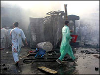 صوبہ سرحد کے ضلع سوات میں بم دھماکہ کے عینی شاہدین کا کہنا ہے کہ دھماکہ اتنا شدید تھا کہ ہلاک ہونے افراد کے جسم کے اعضاء دور تک سڑک پر بکھر گئے جبکہ دھماکے کی آواز اتنی زوردار تھی کہ جیسے علاقے میں ہوائی جہازوں سے بمباری کی گئی ہو۔ دھماکے کے پانچ منٹ بعد جائے وقوعہ پر پہنچنے والے مقامی صحافی شرین زادہ کانجو نے بی بی سی کو بتایا کہ دھماکہ سوات پولیس لائن سے تقریباً سو گز کے فاصلے پر ہوا۔ انہوں نے کہا کہ جائے وقوعہ کے اطراف میں فرنیچر کی دوکانیں ہیں جبکہ ایک سروس سٹیشن بھی ہے جس میں عام شہری بھی ہلاک و زخمی ہوئے۔ ان کے مطابق ’چونکہ دھماکہ اسلحہ سے بھرے ہوئے ٹرک میں ہوا تھا اس لیے اس میں آگ لگ گئی جس سے کئی لاشیں جھلس گئیں۔‘ انہوں نے کہا کہ ’ زخمی خاصی دیر تک گاڑی میں مدد اور امداد کےلیے چیختے رہے لیکن کوئی جائے وقوعہ کی طرف نہیں بڑھ رہا تھا کیونکہ گاڑی میں اسلحہ اور بارود میں آگ لگنے سے وہاں وقفے وقفے سے چھوٹے چھوٹے دھماکے ہوتے رہے جس سے علاقے میں خوف و ہراس بڑھتا رہا۔‘ صحافی کے مطابق زخمیوں کو ہسپتال منتقل کرنے کےلیے بھی ایمبولینس گاڑیاں نہیں تھیں جسکی وجہ سے سخت مشکلات کا سامنا رہا جبکہ مقامی لوگوں نے زخمیوں کو جائے وقوعہ سے نکالنے میں سکیورٹی فورسز کی بڑی مدد کی۔ دھماکے کے ایک اور عینی شاہد پولیس اہلکار طاہر عثمان نے بتایا کہ دھماکے کے وقت وہ پولیس لائن کے قریب واقع عمارت میں ڈیوٹی دے رہے تھے کہ اس دوران ایک زوردار دھماکہ ہوا۔ انہوں نے کہا کہ ’مجھے کچھ دیر کےلیے ایسا لگا جیسے آسمان پھٹ پڑا ہو اور ہر طرف اندھیرا سا چھا گیا ، وہاں پر موجود لوگوں کو کچھ سمجھ نہیں آرہا تھا کہ یہ کیا ہوگیا ہے۔‘ ’میں نے جائے وقوعہ کی طرف دیکھا تو وہاں ہر طرف دھواں اور آگ لگی ہوئی تھی، زخمی چیخ رہے تھے دھماکوں کی آوازیں آرہی تھیں۔ مجھے ایسا لگا جیسے کسی نے پولیس لائن پر حملہ کردیا ہو۔ ایسا لگ رہا تھا کہ جیسے فضائی بمباری ہورہی ہو۔‘ |