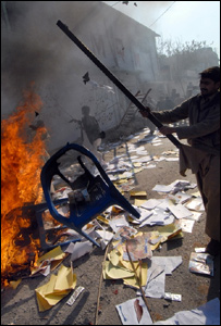 بینظیر بھٹو کے قتل کے خلاف سندھ بھر میں ہونے والے احتجاج، ہنگامہ آرائی اور تشدد کے واقعات کے دوران سرکاری املاک میں مواصلاتی نظام، ٹرانسپورٹ، بینکوں اور روینیو کے دفاتر کو نشانہ بنانے کے علاوہ پہلی بار حکومت کے حامی افراد یا سابقہ حکومت کے وزرائے کے گھروں اور املاک پر حملے کیے گئے یا انہیں جلایا گیا ہے۔ یوں لوگوں نے حکمرانوں کا ساتھ دینے والوں کے خلاف اپنی شدید نفرت کا اظہار کیا ہے۔ حیدر آباد میں سابق وزیراعلیٰ سندھ ارباب غلام رحیم کے بنگلے پر حملہ کرکے جلایا گیا۔ ملازمین کا کہنا ہے کہ ارباب رحیم عمرہ ادا کرنے گئے ہیں۔ دادو میں سابق وفاقی وزیر لیاقت جتوئی کے بنگلے اور ان کے ایک سینما گھر کو نذر آتش کیا گیا۔ بدین میں سابق صوبائی وزیر علی بخش عرف پپو شاہ اور مسلم لیگ کے رہنما شیر جمالی کے بنگلوں پر حملے کیے گئے۔ ضلع ناظم انور ہالے پوتہ کے بنگلے اور وہاں کھڑی لینڈ کروزر کو نذر آتش کردیا گیا۔ میرپورخاص میں مسلم لیگ کے دو رہنماؤں قربان علی شاہ اور خیر محمد بھرگڑی کے بنگلوں پر حملے کیے گئے۔ خیرپور میں مسلم لیگ فنکشنل کے دو رہنماؤں کی اوطاقوں پر حملے کیے گئے۔ اس کے علاوہ پیر پگارا کے کنگری ہاؤس اور مسلم لیگ ہاؤس پر حملہ کیا گیا۔ ٹنڈوالہیار میں سابق صوبائی وزیر عرفان گل مگسی اور ان کی ضلع ناظمہ کے بنگلے پر حملہ کیا گیا اور وہاں کھڑی ایک درجن سے زائد گاڑیوں کو جلا دیا گیا۔ خیال کیا جارہا ہے کہ پاکستان پیپلز پارٹی کے خلاف سخت موقف رکھنے والے سیاسی جماعتوں کے افراد کو آنے والے دنوں میں سخت صورت حال کا سامنا کرنا پڑے گا۔ سندھ میں بارہ مسافر ریل گاڑیوں، آٹھ ریلوے سٹیشنوں اور پانچ مال گاڑیوں کو جلایا گیا جبکہ ایک درجن کے قریب ٹیلی فون ایکسچینج نذر آتش کیے گئے۔ ان ہنگاموں کا دوسرا پہلو یہ ہے کہ اس سے قبل احتجاج کے دوران لوٹ مار کے واقعات اکا دکا ہوتے تھے لیکن اس مرتبہ یہ واقعات بڑے پیمانے پر ہوئے ہیں۔ ٹھٹہ، جیکب آباد، میرپورخاص، نوشہرو فیروز اور دیگر شہروں بڑے پیمانے پر لوٹ مار کے واقعات ہوئے جہاں لوگوں نے پان بیڑی کی کیبن سے لے کر بڑی دکانوں، گوداموں اور بنکوں کو لوٹا ہے۔ حیدرآباد کے قریب واقع جامشورو میں ایک ملٹی نیشنل دوا ساز کمپنی اور شہر میں واقع ایک ملٹی نیشنل ریسٹورنٹ کو آگ لگا دی۔ پی پی پی کے کچھ حلقوں کا کہنا ہے کہ احتجاج کے دوران کچھ ایسے لوگ بھی شامل ہوگئے جو پاکستان پیپلز پارٹی کی مخالف جماعتوں میں شامل ہیں اور وہ ہی لوٹ مار کر رہے ہیں۔ |