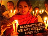 پاکستان میں فوجی حکمرانی کے دوران اعلیْ عدلیہ کے ججوں کو پی سی او یعنی عبوری آئینی فرمان کے ذریعے ان کے عہدے سے الگ کرنا کوئی نئی بات نہیں۔ لیکن تین نومبر کو جاری ہونے والے پی سی او کے خلاف معزول ججوں کی بھرپور مزاحمت اور ججوں کی بحالی کے لیے وکلاء کی جانب سے اعلیْ عدالتوں کے مسلسل بائیکاٹ نے ایک نئی تاریخ رقم کردی ہے۔ صدر پرویز مشرف نے سپریم کورٹ میں اپنی اہلیت کے بارے میں درخواستوں کی سماعت کےدوران تین نومبر کی شام ملک میں ہنگامی حالات کا اعلان کیا اور عبوری آئینی فرمان کے ذریعے پاکستان کے چیف جسٹس افتخارمحمد چودھری سمیت اعلیْ عدلیہ کے ججوں کی بڑی تعداد کو برطرف کردیا۔ وکلاء گزشتہ دس ماہ سے مسلسل احتجاج کرتے ہوئے سڑکوں پر ہیں اور تحریک میں وہ وکلاء بھی شامل ہیں جو ماضی میں وکلاء تنظیموں کی سیاست اور سرگرمیوں سے بالکل الگ تھلگ رہے ہیں۔ وکلاء کی جدوجہد کا آغاز گزشتہ برس نو مارچ کو اس وقت ہوا جب صدر پرویز مشرف نے جسٹس افتخار محمد چودھری کو چیف جسٹس پاکستان کے منصب سے ہٹا کر ان کے خلاف ریفرنس دائر کیا۔ چیف جسٹس افتخار محمد چودھری کے خلاف کارروائی پر ملک بھر کے وکلاء سراپا احتجاج بن گئےاور سڑکوں پر پولیس کے تشدد کا نشانہ بنے۔ وکلاء کی تحریک کے نتیجے میں چیف جسٹس افتخار محمد چودھری تو اپنے منصب پر بحال ہوگئے لیکن وکلاء کے احتجاج اور عدالتوں کے بائیکاٹ کی وجہ سے عام وکلاء کا روزمرہ کا کام بری طرح متاثر ہوا اور وہ عدالتوں سے مسلسل غیر حاضری کے نتیجے میں مالی مشکلات کا شکار ہونے لگے۔ صدر پرویز مشرف کی جانب سے ملک میں ہنگامی حالت نافذ کرنے اور پی سی او کے تحت اعلیْ عدلیہ کے ججوں کو ان کے عہدوں سے فارغ کرنے پر وکلاء دوبارہ جدوجد کے لیے میدان میں اتر آئے۔ اس پی سی او کے تحت سپریم کورٹ کے انیس ججوں میں سے صرف پانچ ججوں نے حلف اٹھایا۔ سپریم کورٹ اور ہائی کورٹس کے پینتالیس کےقریب ججوں نے پی سی او کے تحت حلف اٹھانے سے انکار کر دیا۔ وکلاء اور ججوں کی طرف سے اس نوعیت کا رد عمل پہلی مرتبہ دیکھنے میں آیا۔ ججوں کی بحالی کی تحریک میں وکلاء رہنما اعتزاز احسن ، علی احمد کرد، جسٹس(ر)طارق محمود تین نومبر کی شام سے نظربند ہیں۔