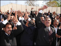نواز شریف کی پشاور آمد کے موقع پر شہر میں سکیورٹی کے سخت انتظامات کیے گئے تھے۔ہائی کورٹ کی طرف جانے والی شاہراہ کو ہر قسم کی ٹریفک کے لیے بند کردیا گیا تھا جبکہ عمارت میں داخل ہونے والے دو مقامات پر جامہ تلاشی لی جارہی تھی۔ہائی کورٹ کی عمارت کی چھت پر بھی پولیس کے اہلکار چوکس کھڑے تھے۔ سکیورٹی کے لحاظ سے نواز شریف کو سابق وزیراعظم کا پروٹوکول دیا گیا تھا۔ہائی کورٹ آمد کے موقع پر ان کے قافلے کو یہ کہہ کر آدھ گھنٹے تک روک دیا گیا کہ پولیس نے دعوی کیا کہ انہوں نے سوری پل پر ایک ٹائم بم برآمد کیا ہے لہذا راستے کو کلیئر کیا جا رہا ہے۔اس پل سے کچھ ہی دیر بعد نواز شریف کے قافلے کو گزرنا تھا۔ وکلاء سے خطاب کے بعد وہ پشاور ہائی کورٹ کے برطرف چیف جسٹس طارق پرویز اور دیگر جج صاحبان سے ملنے ان کی رہائش گئے جہاں پر انہوں نے پی سی او کے تحت حلف نہ لینے پر انہیں خراج تحسین پیش کیا۔ واضح رہے کہ نواز شریف نے آٹھ سال کے بعد پشاور کا دورہ کیا ہے۔ | اسی بارے میں الیکشن کمشنر بھگوان داس: نواز16 January, 2008 | پاکستان مشرف تمام مسائل کی جڑ ہیں: نواز07 January, 2008 | پاکستان انتخابات کا بائیکاٹ: نواز شریف27 December, 2007 | پاکستان ججوں کی بحالی ضروری: نواز23 December, 2007 | پاکستان آٹھ جنوری ریفرنڈم کا دن: نواز شریف10 December, 2007 | پاکستان نواز: ججوں کی بحالی اشد ضروری23 December, 2007 | پاکستان نواز حلف نہ لینے والے ججوں کے گھر27 November, 2007 | پاکستان | ||||||||||||||||||||||||||||||||||||||||