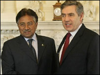برطانوی وزیرِ اعظم گورڈن براؤن نے پاکستان کے صدر ریٹائرڈ جنرل پرویز مشرف سے کہا ہے کہ پاکستان میں جمہوریت کے لیے وہ سیاسی جماعتوں کے ساتھ مل کر کام کریں۔ لندن میں صدر پرویز مشرف کے ساتھ ایک مشترکہ پریس کانفرنس سے خطاب کےدوران برطانوی وزیرِاعظم نے کہا کہ پاکستان کے صدر نے انہیں یقین دہانی کرائی ہے کہ فروری میں ہونے والے انتخابات منصفانہ اور شفاف ہوں گے۔ صدر مشرف کی برطانوی وزیرِ اعظم سے ملاقات کے دوران حقوقِ انسانی کی تنظیموں، وکلاء اور سیاسی کارکنوں نے صدر پرویز مشرف کے خلاف ایک پرجوش مظاہرہ کیا اور اس وقت تک نعرے لگاتے رہے جب تک پرویز مشرف اور صہبا مشرف وہاں سے چلے نہیں گئے۔ اس موقع پر صدر مشرف کے حامیوں کی ایک مختصر تعداد نے بھی اپنے ممدوح کے حق میں نعرہ بازی کی۔ برطانوی وزیرِ اعظم نے کہا کہ انہوں نے پاکستانی صدر کے ساتھ دہشت گردی اور انتہا پسندی ختم کرنے جیسے مسائل پر بات چیت کی ہے اور یہ کہ برطانیہ اور بین الاقوامی برادری اس سلسلے میں پاکستان کی کیا مدد کر سکتی ہے۔ انہوں نے کہا کہ علاقائی سکیورٹی پر بھی گفتگو ہوئی۔