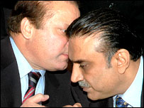 ’مسلم لیگ نون کو ٰمیٹھا میٹھا ہپ ہپ اور کڑوا کڑوا تھوتھوٰٰ کی پالیسی پر عملدرآمد نہیں ہونے دیں گے‘۔ یہ بات پیپلز پارٹی کے ایک رہنما نے ایسے وقت میں کہی ہے جب پیپلز پارٹی اورمسلم لیگ نون ان دنوں وفاق اور صوبوں میں مشترکہ حکومت سازی کے لیے مذاکرات کے عمل سے گذر رہے ہیں۔ اس عمل میں چونکہ دونوں پارٹیوں کی’ٹاپ لیڈر شپ‘ شریک ہے اس لیے دوسرے درجے کی قیادت یہ ہمت تو نہیں کرسکتی کہ کوئی ایسی بات کہے جس سے ان مذاکرات کے مشکل پڑ جانے کا تاثر ملے لیکن وہ کہتے ہیں کہ کچھ توایسا ضرور ہے جو ابھی تک حل نہیں ہو پایا۔ بنیادی مسئلہ مسلم لیگ نون کا ہے۔ ایک طرف تو مرکزی حکومت میں شامل ہونے سے ان کار اور دوسری طرف پاکستان کے سب سے بڑے صوبے پنجاب کی وزرات اعلی لینے پر اصرار ہے۔ مسلم لیگ نون نے معزول عدلیہ کی بحالی کے نام پر ووٹ لیا ہے جبکہ خود ان کے ذاتی اقتدار کی راہ میں وہ سترہویں ترمیم حائل ہے جس کی ایک شق کے تحت تیسری مرتبہ ملک کے وزیر اعظم بننے پر پابندی ہے۔شاید یہ وہ واحد قانون ہے جس کی زد میں فی الوقت پورے ملک میں صرف ایک ہی شخص آرہا ہے اور اس کا نام ہے میاں محمد نوازشریف۔ ان کا تیسرا بڑا مسئلہ صدرپرویز مشرف ہیں جنہوں نے ان کی دوتہائی حکومت کا تختہ الٹا،انہیں گرفتار کیا اور ایسے حالات میں رکھا کہ نواز شریف کو اپنی موت نظر آنے لگی تھی۔نواز شریف صدرمشرف کو چلتا کرنا چاہتے ہیں۔