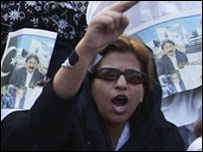 وکلاء کی احتجاجی ریلی سے خطاب کرتے ہوئے وکلاء لاہور ہائی کورٹ بار راولپنڈی بینچ کے صدر سردار عصمت اللہ خان نے کہا کہ وکلاء کی تحریک اس وقت تک جاری رہے گی جب تک معزول چیف جسٹس افتخار محمد چوہدری سمیت دیگر ججوں کو بحال نہیں کیا جاتا۔ انہوں نے کہا کہ فوجی ڈکٹیٹر نے اپنے اقتدار کو طول دینے کی غرض سے ملک میں ایمرجنسی کا نفاذ کر کے چیف جسٹس سمیت دیگر ججوں کو نہ صرف ان کے عہدوں سے ہٹا دیا گیا بلکہ ان کو گھروں میں نظر بند کر دیا گیا۔ انہوں نے کہا کہ پاکستان شائد دنیا کا واحد ملک ہے جہاں پر عدلیہ کو قید کردیا گیا ہے اور اس اقدام کی وجہ سے ملک کی دنیا بھر میں جگ ہنسائی ہوئی ہے۔ سردار عصمت اللہ نے اتوار کے روز معزول چیف جسٹس افتخار محمد چوہدری کے گھر کےقریب مظاہرین پر پولیس اہلکاروں کی طرف سے آنسو گیس کی شیلنگ اور لاٹھی چارج کی سخت مذمت کرتے ہوئے کہا کہ ذمہ دارا پولیس افسران کے خلاف سخت کارروائی ہونی چاہیے۔ انہوں نے کہا کہ وکلاء برادری نے معزول چیف جسٹس کو ان کے گھر میں نظر بند کرنے کے خلاف تھانہ سیکریٹریٹ میں صدر جنرل ریٹائرڈ پرویز مشرف، وزیر داخلہ ، سیکرٹری داخلہ اور اسلام آباد کی ضلعی انتظامیہ اور پولیس کے اعلی حکام کے خلاف درخواست دی ہوئی ہے اور اگر آئندہ چند روز میں اس پر کوئی کارروائی نہ ہوئی تو وہ ڈسٹرکٹ اینڈ سیشن جج کی عدالت میں دعوی دائر کریں گے۔ اسلام آباد میں بھی وکلاء نے ضلع کچہری میں احتجاجی مظاہرہ کیا۔ | اسی بارے میں عدالتوں کے بائیکاٹ میں نرمی24 February, 2008 | پاکستان ’لانگ مارچ مؤخر ہو سکتا ہے‘26 February, 2008 | پاکستان جسٹس (ر) طارق کی نظر بندی ختم26 February, 2008 | پاکستان اعتزاز احسن کا موبائل پیغام29 February, 2008 | پاکستان عمران کی قیادت میں وکلاء احتجاج29 February, 2008 | پاکستان ہفتۂ اظہارِ یکجہتی 09 March, 2008 | پاکستان | ||||||||||||||||||||||||||||||||||||||||