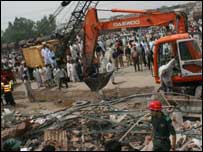 ایس پی نے بتایا کہ دو منزلہ عمارت کی کنکریٹ کی چھت کا ایک بڑا حصہ ٹوٹ کر پڑوس میں واقع ٹرک اڈے کے کمرے پر گرا جس سے اڈے کا ایک کمرہ زمین بوس ہوگیا۔ اس کمرے میں اور چھت پر چند محنت کش سو رہے تھے جو ملبے تلے دب گئے۔ پولیس کا کہنا ہے کہ ہلاک شدگان کی اکثریت انہی محنت کشوں کی ہے۔ دیگر دو عمارتوں کےمکین بھی ملبے کے نیچے آئے ہیں۔ انہوں نے مزید کہا کہ سولہ کے قریب افراد کو زندہ نکال لیا گیا ہے۔ | اسی بارے میں بورڈ آف ریونیو دفتر میں آگ20 March, 2008 | پاکستان کالام: سات افراد جل کر ہلاک24 March, 2008 | پاکستان منہدم پل، تعمیراتی ریکارڈ سربمہر02 September, 2007 | پاکستان پل گرنےسےہلاکتیں ،چار افسر معطل01 September, 2007 | پاکستان ایک ہی خاندان کے پانچ افراد ہلاک14 August, 2007 | پاکستان چھت گرنے سے پانچ ہلاک03 February, 2007 | پاکستان کراچی: فیکٹری میں آگ سے آٹھ ہلاک16 January, 2007 | پاکستان اسلام آباد میں دو سلنڈر دھماکے03 November, 2006 | پاکستان | ||||||||||||||||||||||||||||||||||||||||