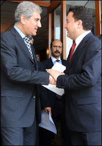 پاکستان اور ترکی نے دونوں ملکوں کے درمیان تجارتی حجم ساٹھ کروڑ نوے لاکھ ڈالر سے بڑھا کر ایک ارب ڈالر تک کرنے کا فیصلہ کیا ہے۔ اس بات کا اعلان ترکی کے وزیر خارجہ علی بابا جان اور پاکستانی وزیر خارجہ شاہ محمود قریشی نے سنیچر کو اسلام آباد میں ایک پریس کانفرنس سے خطاب کرتے ہوئے کیا۔ پاکستانی وزیر خارجہ نے کہا کہ دونوں ملکوں کے درمیان جاری دفاعی پیدوار کے منصوبوں کو مزید فروغ دیا جائے گا۔ انہوں نے کہا کہ دونوں ملکوں کے درمیان تعلقات کسی شخصی بنیاد پر قائم نہیں ہوئے بلکہ دونوں ملک مذہبی اور بھائی چارے کے مضبوط بندھن میں بندھے ہوئے ہیں۔ شاہ محمود قریشی نے کہا کہ دونوں ممالک ایک جوائنٹ ورکنگ گروپ کا اجلاس بلانے پر رضا مند ہوگئے ہیں۔ اس کا اجلاس آئندہ ماہ ہوگا جس میں افغانستان کے مسئلے پر سربراہ کانفرنس بلانے کے بارے میں حتمی تاریخ کا اعلان کیا جائے گا۔ انہوں نے کہا کہ پہلے اس ورکنگ گروپ کا اجلاس اس سال جنوری میں ہونا تھا لیکن پیپلز پارٹی کی چیئرپرسن بےنظیر بھٹو کی وفات کی وجہ سے یہ اجلاس نہ ہوسکا۔ انہوں نے کہا کہ یہ سربراہ کانفرنس جون میں متوقع ہے جس میں پاکستان، ترکی اور افغانستان کے سربراہان شرکت کریں گے۔ ترکی کے وزیر خارجہ نے کہا کہ ان کی پاکستانی ہم منصب کے ساتھ ملاقات انتہائی کامیاب رہی اور ملاقات میں باہمی علاقائی اور بین الاقوامی امور پر بات ہوئی اور دونوں لیڈروں کے درمیان ان معامالات پر مکمل ہم آہنگی پائی گئی۔ علی بابا جان نے کہا کہ ان کا ملک نئی پاکستانی حکومت سے ملکر کر کام کرنا چاہتا ہے۔ انہوں نے کہا کہ پاکستان میں حالیہ ہونے والے عام انتخابات شفاف ہوئے ہیں جس میں عوام نے اپنی پسند کے نمائندوں کو واضح مینڈیٹ دیا ہے جس سے ثابت ہوتا ہے کہ پاکستانی عوام جمہوریت پسند ہیں۔ ترکی کے وزیر خارجہ نے کہا کہ پاکستان کو اس وقت جن چیلنجز کا سامنا ہے، اُس کے لیے ضروری ہے کہ پاکستانی ادارے اور عوام ملکر کام کریں۔ ایک سوال کے جواب میں علی بابا جان نے کہا کہ جغرافیائی لحاظ سے پاکستان ایک اہم جگہ پر واقع ہے اور وہ جنوب ایشائی اور وسطی ایشیائی ریاستوں میں اہم کردار ادا کر سکتا ہے۔ ایک سوال کے جواب میں پاکستانی وزیر خارجہ شاہ محمود قریشی نے کہا کہ ترکی اور پاکستان افعانستان کی تعمیر نو کے لیے اہم کردار ادا کر رہے ہیں۔ انہوں نے کہا کہ جنگ کسی مسئلے کا حل نہیں ہے۔ ترکی کے وزیر خارجہ سے جب یہ پوچھا گیا کہ ترکی کے کچھ افراد کو انتہا پسندی اور مشکوک سرگرمیوں میں ملوث ہونے کی بنا پر پاکستان سے ڈی پورٹ کیا گیا ہے تو اس پر انہوں نے لاعلی کا اظہار کیا تاہم پاکستانی وزیر خارجہ نے کہا کہ اس خبر میں کوئی صداقت نہیں ہے۔ ترکی کے وزیر خارجہ نے صدر جنرل ریٹائرڈ پرویز مشرف سے بھی ملاقات کی جس میں باہمی دلچسپی کے امور پر تبادلہ خیال کیا گیا۔ | اسی بارے میں ترکی صدارتی انتخابات کالعدم01 May, 2007 | پاکستان نوٹ پاکستان کا، جھنڈا ترکی کا 08 August, 2007 | پاکستان مصالحت: پہلے سعودیہ اب ترکی04 December, 2007 | پاکستان تجارتی سرگرمیاں ابھی تک معطل31 December, 2007 | پاکستان | ||||||||||||||||||||||||||||||||||||||||