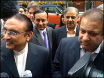تاہم جاوید ہاشمی اور چوہدری نثار علی خان اس جماعت کے ایسے نمائندے ہیں جو اب بھی بارہ مئی کی ڈیڈ لائن پر کسی قیمت سمجھوتہ نہ کرنے کی بات زور شور سے کر رہے ہیں اور آر یا پار پر اڑے نظر آتے ہیں۔ چوہدری نثار علی خان جو حکومت میں شمولیت سے لے کر ججوں کی بحالی تک تمام امور کے بارے میں مسلم لیگ (ن) کی طرف سے بات چیت میں سرفہرست رہے انہیں لندن مذاکرات میں اپنی جماعت نے شامل ہی نہیں کیا۔ دبئی میں دو روزہ بات چیت کے بعد جب میاں نواز شریف آصف علی زرداری کی طرف سے بھیجی ہوئی گاڑی میں بیٹھ رہے تھے تو انہوں نے شہباز شریف اور خواجہ آصف کو اپنے ساتھ بیٹھنے کو کہا جبکہ چوہدری نثار علی خان خاموشی سے اکیلے ایک اور گاڑی میں بیٹھ گئے۔ مسلم لیگ (ن) کے ایک سرکردہ رہنما کے مطابق دبئی مذاکرات کے موقع پر چوہدری نثار علی خان کے سخت اور تلخ لہجے کی وجہ سے اتحاد ٹوٹتے ٹوٹتے بچا اور اس کے لیے میاں نواز شریف کو عین وقت پر مداخلت کرنی پڑی۔ ججوں کی بحالی کے بارے میں مذاکرات کے اہم موڑ (لندن ٹاکس) سے چوہدری نثار علی کی غیرحاضری بھی ان خدشات کو تقویت پہنچاتی ہے جس کے مطابق کہا جا رہا ہے کہ مذاکرات کی طوالت ایک حکمت عملی کا حصہ ہے۔ مسلم لیگ (ن) کے ایک وزیر نے بتایا کہ لندن بات چیت کی ناکامی کی صورت میں بھی مسلم لیگ (ن) فوری طور پر حکومتی اتحاد سے علیحدگی کا فیصلہ نہیں کرے گی۔ ان کے مطابق اگر ضروری ہوا تو بارہ مئی کو اسلام آباد میں مجلس عاملہ اور پارلیمانی پارٹی کے مشترکہ اجلاس میں حکومتی اتحاد سے علیحدگی کے لیے مسلم لیگ (ن) ڈیڈ لائن دے گی کی فلاں تاریخ تک اگر جج بحال نہ ہوئے تو وہ حکومت سے علیحدہ ہوجائیں گے۔ ان کے بقول ہوسکتا ہے کہ اس مہلت کے دوران مسلم لیگی وزراء دفاتر نہ جانے کا فیصلہ بھی کریں۔ مسلم لیگ (ن) کے رہنما ججوں کی بحالی کے سوال پر اپنی جماعت کی پیپلز پارٹی کے ساتھ چوہے بلی کے کھیل کی سختی سے تردید کرتے ہیں لیکن کچھ مبصرین کہتے ہیں کہ انہیں دال میں کچھ کالا لگتا ہے اور یہ معاملہ پنجابی زبان کی اس کہاوت سے مطابقت رکھتا ہے کہ ’۔۔۔ چوراں نال رلی ہوئی ہے۔‘ ججوں کی بحالی کے سوال پر بظاہر عام لوگوں کی نظر میں پاکستان پیپلز پارٹی ولن اور مسلم لیگ (ن) ہیرو کا روپ دھارے ہوئے ہیں۔ لیکن پیپلز پارٹی والے کہتے ہیں کہ سو سنار کی ایک لوہار کی۔ ان کے مطابق اب دیکھنا یہ ہے کہ لوہار کب اپنی باری لیتا ہے۔ |