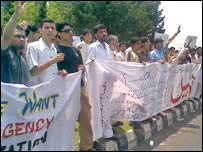 قبائلی علاقے کرم ایجنسی میں جاری فسادات کے خاتمے اور علاقہ کو جانے والے راستے کھولنے کے حق میں مقامی اہل تشیع سے تعلق رکھنے والے افراد اور طلبہ نے پارلیمان کے سامنے احتجاجی مظاہرہ کیا اور حکومت پر اپنی رٹ قائم کرنے میں ناکامی کا الزام عائد کیا ہے۔ تاہم وزیر اعظم کے مشیر داخلہ رحمان ملک نے مظاہرین کے رہنماؤں سے ملاقات میں تین روز میں کرم ایجنسی کی سڑکیں کھولنے اور طلبہ کو ٹرانسپورٹ کے متبادل ذرائع فراہم کرنے کا وعدہ کیا ہے۔ تقریباً ایک سو مظاہرین نے، جن میں نوجوان طلبہ کی اکثریت شامل تھی، بینر اور پلے کارڈز اٹھا رکھے تھے۔ ان بینروں پر ’طالبانئزیشن نامنظور‘ اور ’کرم ایجنسی کا محاصرہ ختم کرو‘ جیسے نعرے درج تھے۔ شرکاء نے حکومت خصوصاً گورنر سرحد اویس غنی کے خلاف شدید نعرہ بازی بھی کی۔ ایک شخص علی طوری نے احتجاج کی وجہ بیان کرتے ہوئے کہا کہ ان کی کرم ایجنسی میں گزشتہ پندرہ ماہ سے فسادات کا سلسلہ جاری ہے تاہم حکومت اپنی رٹ قائم کرنے میں ناکام رہی ہے۔ ’ہسپتالوں میں آکسیجن نہیں۔ اشیاء خوردونوش اور تیل کی قلت اس کے علاوہ ہے۔ دیگر علاقوں میں زیر تعلیم طلبہ اپنے گھروں کو ٹل پاڑہ چنار روڈ کی بندش کی وجہ سے نہیں جاسکتے۔ دس لاکھ افراد محصور ہیں۔‘ حکومت کی جانب سے ہیلی کاپٹروں کے ذریعے لوگوں کو لانے لے جانے کی سہولت کے بارے میں طلبہ کا کہنا تھا ’وہ مخصوص لوگوں کے فائدے کے لیے ہے۔ غریب طلبہ کو کوئی نہیں پوچھتا۔‘