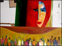 پاکستان میں صوبہ سندہ کے ایک آرٹسٹ نے ستائیس دسمبر کی شام کو اپنی پینٹنگ میں یاد کیا ہے۔ فنکار نے ایبسٹریکٹ مصوری میں جو تصویر بنائی ہے اس میں سرخ رنگ تمام رنگوں پر حاوی ہے اور لکیروں سے جو نقش ابھر کر سامنے آئے ہیں اس میں بینظیر بھٹو کا چہرہ نظر آتا ہے۔ یہ کارنامہ لاڑکانہ کے ایک فنکار رضوان کا ہے۔ اپنی ماں کی یاد میں سندھ کی پہلی ذاتی گیلیری بنانے والے آرٹسٹ رضوان کا کہنا ہے کہ عام طور پر وہ پورٹریٹ نہیں بناتے تاہم مرحوم بینظیر بھٹو کا چہرہ ان سے لاشعور میں بن گیا ہے اور یہ ان کی شعوری کوشش نہیں تھی۔ اپنی گیلری میں اپنے فن پاروں کے درمیاں بیٹھے رضوان نے بی بی سی کو بتایا کہ ستائیس دسمبر کی شام کو جب ان کے آس پاس کے اکثر لوگ اپنا غصہ نکالنے کے لیے گاڑیوں اور شہروں کو آگ لگا رہے تھے وہ اپنی گیلری کے دونوں دروازے بند کرکے اپنے غصے کو رنگوں کی مدد سے کینواس پر اتار رہے تھے۔ کیونکہ بینظیر کی ہلاکت کا دکھ تو انہیں بھی تھا۔ رضوان کہتے ہیں کہ انہیں پہلے سے پتہ نہیں تھا کہ وہ کیا بناتے جا رہے ہیں مگر ستائیس اور انتیس دسمبر کے درمیاں ان کے کام پر سرخ رنگ حاوی تھا۔ جب حالات معمول پر آنےلگے تو انہوں نے اپنےدوستوں کو پینٹنگ دکھائی تو ایک دوست نے کہا ’یہ تو آپ نے بینظیر بھٹو بنائی ہے۔‘