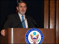 شدت پسندوں کے ساتھ مذاکرات کے بارے میں رچرڈ باؤچر نے کہا کہ وہ ان لوگوں کے ساتھ بات چیت کے حامی ہیں جو واقعی تشدد کا راستہ ترک کر کے حکومتی رٹ تسلیم کرتے ہیں۔ ’ایسے لوگوں کو تشدد ترک کر کے امن کا راستہ اختیار کرنے کا موقع ملنا چاہئے۔ لیکن ان لوگوں کے ساتھ بات نہیں ہو سکتی جو مذاکرات کو محض وقت گزارنے اور اپنی قوت کو مجتمع کرنے کے لئے استعمال کرنا چاہتے ہیں۔ اس طرح کے عناصر کے خلاف حکومت پاکستان کی کارروائیاں قابل تحسین ہیں۔‘ رچرڈ باؤچر نے کہا کہ وہ اس نکتے پر حزب اختلاف کے راہنما نواز شریف کے ساتھ ملاقات کے دوران تبادلہ خیال بھی کریں گے۔ واضح رہے کہ مسلم لیگ نواز کے قائد نے قبائلی علاقوں میں فوجی کارروائیاں فوری طور پر ختم کر کے مذاکرات کا اعلان کرنے کا مطالبہ کیا ہے۔
