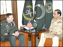 پاکستان نے ایک مرتبہ پھر امریکہ پر واضح کیا ہے کہ ملک کے قبائلی علاقوں میں جاری میزائل حملوں سے خطے میں امریکہ مخالف جذبات بھڑکیں گے، لہذا امریکہ کو پاکستان کی علاقائی سالمیت اور خودمختاری کا احترام کرنا ہوگا۔ یہ وضاحت پاکستانی وزیر دفاع احمد مختار نے امریکی فوج کی مرکزی کمان کے نئے سربراہ جنرل ڈیوڈ پیٹریئس سے ملاقات میں کی۔ ملاقات میں امریکہ کے جنوبی ایشیا کے لیے نائب معاون سیکرٹری رچرڈ باؤچر اور پاکستان میں امریکی سفیر این پیٹرسن بھی موجود تھیں۔ گزشتہ رات جنوبی ایشیا کے لیے امریکی نائب وزیر خارجہ رچرڈ باؤچر کے ہمراہ اسلام  | | | ملاقات میں پیشہ ورانہ دلچسپی کے امور پر تبادلہ خیال کیا۔ | آباد آمد کے بعد جنرل پیٹریئس نے ملاقاتوں کا سلسلہ پاکستان فوج کے سربراہ جنرل اشفاق پرویز کیانی سے کیا۔ فوج کے تعلقات عامہ کے شعبے کی جانب سے جاری مختصر بیان میں صرف اتنا کہا گیا کہ جنرل ہیڈکواٹرز راولپنڈی میں ہونے والی’اس ملاقات میں پیشہ ورانہ دلچسپی کے امور پر تبادلہ خیال کیا گیا۔‘ تاہم وزارت دفاع کی جانب سے جاری ایک بیان میں احمد مختار سے ملاقات کی تفصیل بتاتے ہوئے اس خدشے کا اظہار کیا گیا کہ امریکہ کی طرف سے جاری حملوں سے لوگوں کے غم وغصے میں اضافہ ہوگا۔ جنرل پیٹریئس نے دیگر اعلی امریکی فوجی اہلکاروں کے علاوہ وزیر اعظم سید یوسف رضا گیلانی سے بھی ملاقات کی تاہم سرکاری بیان میں یہ واضح نہیں کیا گیا کہ دونوں کے درمیان کن امور پر بات ہوئی یا کیا فیصلے ہوئے۔ ملاقات میں پاکستان کی جانب سے فوجی سربراہ جنرل کیانی اور قومی سلامتی امور کے مشیر محمود علی درانی بھی موجود تھے۔ احمد مختار کا کہنا تھا کہ ’پاکستان افغانستان میں امن کا خواہاں ہے کیونکہ پرامن افغانستان نہ صرف پاکستان بلکہ پورے خطے کے لیے اہم ہے۔‘ انہوں نے امریکی حکام کو قبائلی علاقوں میں جاری فوجی کارروائیوں کے بارے میں بھی آگاہ کیا۔ بیان کے مطابق وزیر دفاع نے امریکی اہلکاروں کو پاکستان کی سکیورٹی ضروریات سے بھی آگاہ کیا تاکہ وہ بہتر انداز میں دہشت گردی عناصر کا مقابلہ کرسکے۔ انہوں نے قبائلی علاقوں میں روزگار کے بہتر مواقع پیدا کرنے کی ضرورت پر بھی زور دیا۔  |  پیٹریئس اس دورے میں پاکستانی حکام سے شدت پسندوں کے ساتھ مذاکرات کے عمل کو شروع کرنے پر بھی مشاورت کر رہے ہیں۔  |