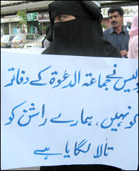 کراچی میں خواتین اور بچوں نے سنیچر کو جماعۃ الدعوۃ پر پابندی کے خلاف مظاہرہ کیا اور کہا کہ اس پابندی کے بعد سینکڑوں گھروں کے چولہے بجھ جائیں گے۔ مظاہرہ کراچی پریس کلب کے سامنے کیا گیا جہاں خواتین اور بچے بینرز اور پوسٹرز اپنے ہاتھوں میں اٹھائے ہوئے تھے جس میں جماعت الدعوۃ پر پابندی کی مذمت کی گئی تھی۔ نائلہ کے دس بھائی بہن اور بوڑھے ماں باپ ہیں اور وہ پسماندہ علاقے ریڑھی گوٹھ کی رہائشی ہیں۔ انہوں نے بتایا کہ ’اس تنظیم کے لوگ بہت اچھے ہیں وہ ہمیں مہینے کا راشن دیتے ہیں، روز مرہ خرچ کے لیے رقم دیتے ہیں جبکہ ہم میں سے اگر کوئی بیمار پڑتا ہے تو وہ ان کی ڈسپنسری جاتا ہے جہاں مفت علاج کی سہولیات ہیں۔‘ ماڈل کالونی، ملیر سے آئی مسز عبداللہ نے کہا کہ جماعت الدعوۃ پر پابندی سے سینکڑوں گھروں کے چولہے بجھ جائیں گے اور ان پر پابندی دراصل ’غریبوں پر سراسر ظلم ہے۔‘