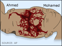 مصر سے تعلق رکھنے والے دو جڑواں بھائیوں کو جن کے سر پیدائشی طور پر جڑے ہوئے تھے ایک طویل آپریشن کے بعد علیحدہ کر دیا گیا ہے اور ڈاکٹروں کا کہنا ہے کہ ان کی حالت خطرے سے باہر ہے۔ امریکی ریاست ڈالاس میں بچوں کے ایک ہسپتال میں ہونے والے اس آپریشن کے بعد ڈاکڑوں نے اخبارنویسوں کو بتایا کہ دونوں بھائیوں کی حالت خطرے سے باہر ہے تاہم انھیں ابھی کئی روز تک بے ہوش رکھا جاائے گا تاکہ وہ جلد از جلد صحت یاب ہو سکیں۔ آپریشن میں شامل ایک سینیئر ڈاکٹر جم تھامسن نے کہا کہ یہ دونوں بھائی جن کی عمر دو سال ہے اب الگ الگ آزادنہ طور پر زندگی گزارنے کے قابل ہیں۔ اس آپریشن میں ڈاکڑوں کو ان بھائیوں کے جڑے ہوئے سروں اور ان میں موجود رگوں کے گنجلک جال کو علیحدہ کرنے میں چوبیس گھنٹےسے زیادہ کا وقت لگا۔ اس آپریشن میں پچاس سے زیادہ ڈاکٹروں ، نرسوں اور دیگر طبًی عملے نےحصہ لیا۔ محمد اور احمد ابراہیم کے دماغ علحیدہ تھے لیکن ان کی ایک اہم نس مشترک تھی۔ امریکی ریاست ٹیکساس کے ڈاکٹروں نے خدشہ ظاہر کیا تھا کہ انہیں طویل آپریشن کے ذریعے الگ کرنے کے دوران ان کی موت بھی واقع ہو سکتی ہے۔