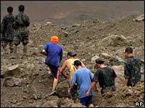 فلپائن کی صدر گلوریا ارویو کا کہنا ہے کہ اس علاقے کے لوگوں کو تودے گرنے کے مزید واقعات کے لیے تیار رہنا چاہیے۔ فلپایینی ریڈ کراس کے سربراہ کا کہنا ہے کہ ’ ہم بہترین کی امید کر رہے ہیں اور بدترین کے لیے تیار بھی ہیں۔ مجھے اب بھی امید ہے کہ ہم کچھ افراد کو زندہ نکال سکیں گے‘۔ لینڈ سلائیڈنگ کا نشانہ بننے والے علاقے میں موجود بی بی سی کی نمائندہ کا کہنا ہے کہ ’علاقے میں زندگی کے کوئی آثار نہیں ہیں، کوئی عمارت کھڑی نظر نہیں آ رہی ہے اور ہر جگہ ٹین کی ٹوٹی ہوئی چھتوں، جڑ سے اکھڑے درختوں اور سرخ مٹی کے ڈھیر ہیں‘۔ یہ لینڈ سلائیڈنگ علاقے میں دس روز سے جاری بارشوں کے بعد ہوئی۔ بی بی سی کی نمائندہ کا کہنا ہے متاثرہ علاقے میں اگائے جانے والے ناریل کے درختوں کی کمزور جڑوں کی وجہ سے اس علاقے میں تودے گرنے کا خطرہ ہمیشہ سے موجود رہا ہے۔ ان کا یہ بھی کہنا تھا کہ متاثرہ علاقہ لینڈ سلائیڈنگ کے علاوہ سمندری طوفانوں کی زد میں بھی رہا ہے۔ | اسی بارے میں فلپائن: سینکڑوں ہلاک و لاپتہ 17 February, 2006 | آس پاس یمن تودہ: ہلاک شدگان 60 ہو گئے01 January, 2006 | آس پاس یمن میں تودہ گرنے سے تیس ہلاک29 December, 2005 | آس پاس | ||||||||||||||||||||||||||||||||||||||||