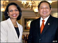 انڈونیشیا کے اپنے پہلے سرکاری دورے پر امریکی وزیر خارجہ کونڈولیزا رائس نے وہاں کے معاشرے میں ’اعتدال پسندی‘ کو مسلم دنیا کے لیے ایک مثال قرار دیا ہے۔ انڈونیشیا دنیا کا سب سے بڑا مسلم ملک ہے۔ وزیر خارجہ رائس نے اعتراف کیا کہ امریکہ کی خارجہ پالیسی ہمیشہ مقبول نہیں رہی لیکن انہوں نے کہا کہ وہ تمام مذاہب کی قدر کرتی ہیں۔ رائس نے دہشت گردی کے خلاف انڈونیشیا کی جانب سے ملنے والی مدد کی تعریف کی۔ امریکی وزیر خارجہ نے انڈونیشیا کے صدر بیم بینگ یودھویونو کے ساتھ ملاقات میں دونوں ملکوں کے فوجی روابط پھر سے شروع کرنے اور برڈ فلو کے مسئلے کے بارے میں بھی بات چیت کی۔ انڈونیشیا کے دارالحکومت جکارتہ میں رائس کے دو روزہ دورے کے خلاف سینکڑوں لوگوں نے مظاہرے کیے۔ امریکہ مخالف نعرے لگاتے ہوئے مظاہرین دارالحکومت میں امریکی سفارت خانے کے سامنے جمے رہے۔ ماہرین کا کہنا ہے کہ امریکہ دنیا کے سب سے مسلم ملک انڈونیشیا کے ساتھ اپنے تعلقات بہتر کرنے کا خواہاں ہے۔ جکارتہ میں اپنے انڈونیشیائی ہم منصب حسن ورایودا کے ساتھ بات کرتے ہوئے رائس نے کہا کہ جمہوری انڈونیشیا مسلم دنیا کے لیے ’مشعل راہ‘ ہے۔ وزیر خارجہ رائس نے کہا: ’میں سمجھتی ہوں کہ انڈونیشیا رواداری، اعتدال پسندی اور کثیرالمعاشرہ سماج کے مثال کے طور پر بہت بڑا کردار ادا کرسکتا ہے۔‘ انہوں نے بیرون ملک ہونے والی امریکہ کی تنقید میں نرمی لانے کی کوشش میں کہا کہ ’میرے خیال امریکہ کو دنیا میں بہت کچھ کرنا پڑا جو کہ بیشتر دنیا میں مقبول نہیں ہے۔‘ رائس نے مزید کہا: ’ہم ایک مشکل دشمن کے خلاف لڑرہے ہیں، ایک دشمن جسے یہاں انڈونیشیا میں، بالی میں، محسوس کیا گیا اور جکارتہ میں۔‘ انڈونیشیا کے وزیر خارجہ حسن ورایودا نے کچھ معاملات پر دونوں ملکوں کے اختلافات کا اعتراف کیا لیکن صوبہ آچے میں امن کی بحالی میں امریکی امداد کا شکریہ اداد کیا۔ انڈونیشیا کے صدر بیم بینگ یودھویونو کے ایک ترجمان نے بتایا کہ انہوں نے رائس کے ساتھ علاقے میں سکیورٹی کے معاملات، مشرق وسطیٰ میں تبدیلیاں اور مغرب اور اسلام کے درمیان تعلقات کے بارے میں بات چیت کی۔ | اسی بارے میں ڈینش انخلاء پر انڈونیشیا کاافسوس12 February, 2006 | آس پاس نیا صدر، نئی امیدیں23 September, 2004 | آس پاس ’ایران دہشت گردوں کا گڑھ ہے‘09 March, 2006 | آس پاس رائس کی حسنی مبارک سے ملاقات22 February, 2006 | آس پاس رائس مشرق وسطی کے دورے پر21 February, 2006 | آس پاس ’ایران و شام نے جذبات بھڑکائے ہیں‘08 February, 2006 | آس پاس بالی دھماکہ، عدالت کا فیصلہ 03 March, 2005 | آس پاس پولیس کا شک جمیعتہ اسلامیہ پر 02 October, 2005 | آس پاس | ||||||||||||||||||||||||||||||||||||||||