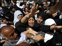 اسرائیلی وزارت دفاع نے حکم دیا ہے کہ غزہ میں فلسطینی خاندان کی ہلاکت کی تحقیقات شروع کی جائیں۔ ایک فلسطینی مبینہ عسکریت پسند پر فضائی حملے کے نتیجے میں ایک ہی خاندان کی تین نسلوں سے تعلق رکھنے والے افراد ہلاک ہوگئے۔ یہ افراد شام کے وقت ایک گاڑی میں سفر کررہے تھے جب اسرائیلی فوج نے میزائیل سے یہ حملہ کیا۔ اس حملے میں اسلامک جہاد سے تعلق رکھنے والے محمد الدادوع ہلاک ہوگئے۔ حملے میں بچ جانے والے ایک شخص نے بتایا کہ اسرائیلی حملے نے ان کی بیوی، بیٹے اور ماں کی جان لے لی جو کہ ان کی کل کائنات تھے جبکہ ایک تین سالہ بیٹی شدید زخمی حالت میں ہسپتال میں داخل ہے۔ ڈاکٹروں کا کہنا ہے کہ اس بچی کی ریڑھ کی ہڈی متاثر ہوئی ہے جس کی وجہ سے وہ اب کبھی بھی اپنے ہاتھ یا ٹانگیں نہیں ہلا سکے گی جبکہ تمام زندگی اس کی سانسیں مشین کی مدد سے چل سکیں گی۔ نماز جنازہ پر تعزیت کے لیئے موجود مشتعل فلسطینیوں کا مطالبہ ہے کہ جواباً اسرائیل پر حملہ کیا جائے۔ اسلامی جہاد کے ایک رکن کا کہنا ہے: ’ہم بدلے میں یہودی قوم کے پیروں تلے زمین ہلا کر رکھ دیں گے۔‘ اسرائیل نے تسلیم کیا ہے کہ ہلاک ہونے والے تین افراد معصوم شہری تھے۔ تاہم اسرائیلی حکام کے مطابق محمد الدادوع کی ہلاکت ’منصفانہ‘ تھی۔ اسرائیلی فضائیہ کے سربراہ کا کہنا ہے کہ ’ہم نے صحیح لمحہ تلاش کرنے کے لیئے بہت انتظار کیا ہے۔‘ اسلامی جہاد کے مطابق محمد الدادوع ان کے ایک سینیئر انجینیئر تھے جو اسلحے کی تیاری کے شعبے سے تعلق رکھتے تھے۔ بظاہر یہ میزائیل ایک ایسے طیارے سے داغا گیا تھا جو خودکار تھا اور جس میں کوئی شخص موجود نہیں تھا۔ | اسی بارے میں اسرائیل: ’حماس پر حملہ نہیں کریگا‘ 18 April, 2006 | آس پاس تل ابیب: سخت اسرائیلی ردِ عمل18 April, 2006 | آس پاس فلسطینی دھڑوں کے بیچ مسلح جھڑپیں19 May, 2006 | آس پاس فلسطینی انٹیلیجنس سربراہ شدید زخمی20 May, 2006 | آس پاس | ||||||||||||||||||||||||||||||||||||||||