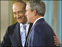 ایہود اولمرت گزشتہ روز واشنگٹن میں وزیرِ خارجہ کونڈولیزا رائس سے ملاقات کی تھی جس میں مشرقِ وسطیٰ میں امن کے عمل اور ایران کے جوہری پروگرام پر خدشات بات چیت کا اہم موضوع رہے۔ نامہ نگاروں کا کہنا ہے کہ ایہود اولمرت نے امریکہ کے اپنے پہلے دورے میں صدر جارج بش سے جو بات چیت کی ہے اس کا محور فلسطین اور اسرائیلی تنازع رہا۔بظاہر اس ملاقات کو صدر بش نے امن کوششوں کو بچانے کے لیئے استعمال کیا ہے۔